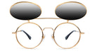 - Attached tinted lens frame, flip-up for clear lens or down for sunglasses