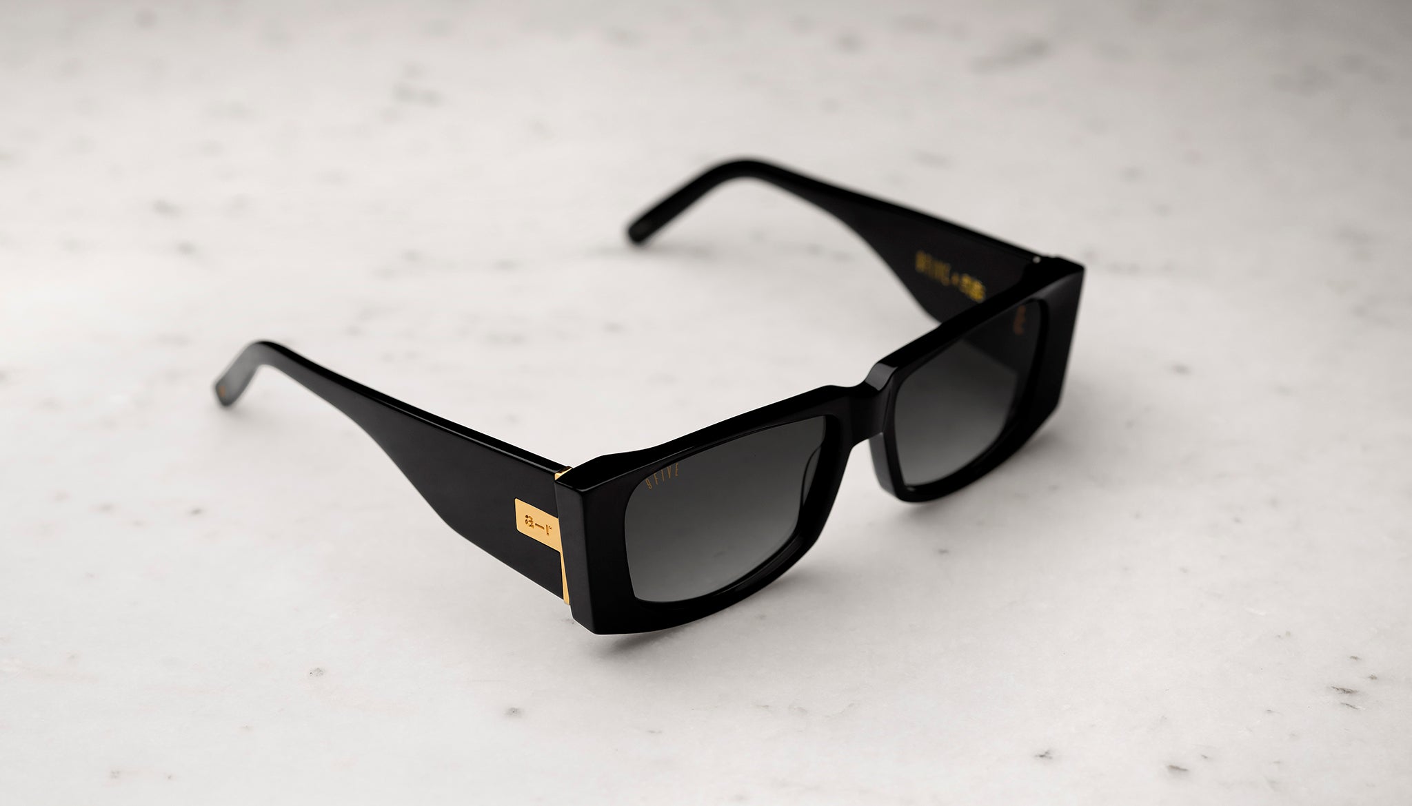 - Gold metal 9FIVE monogram coin embedded on left and right temple tip