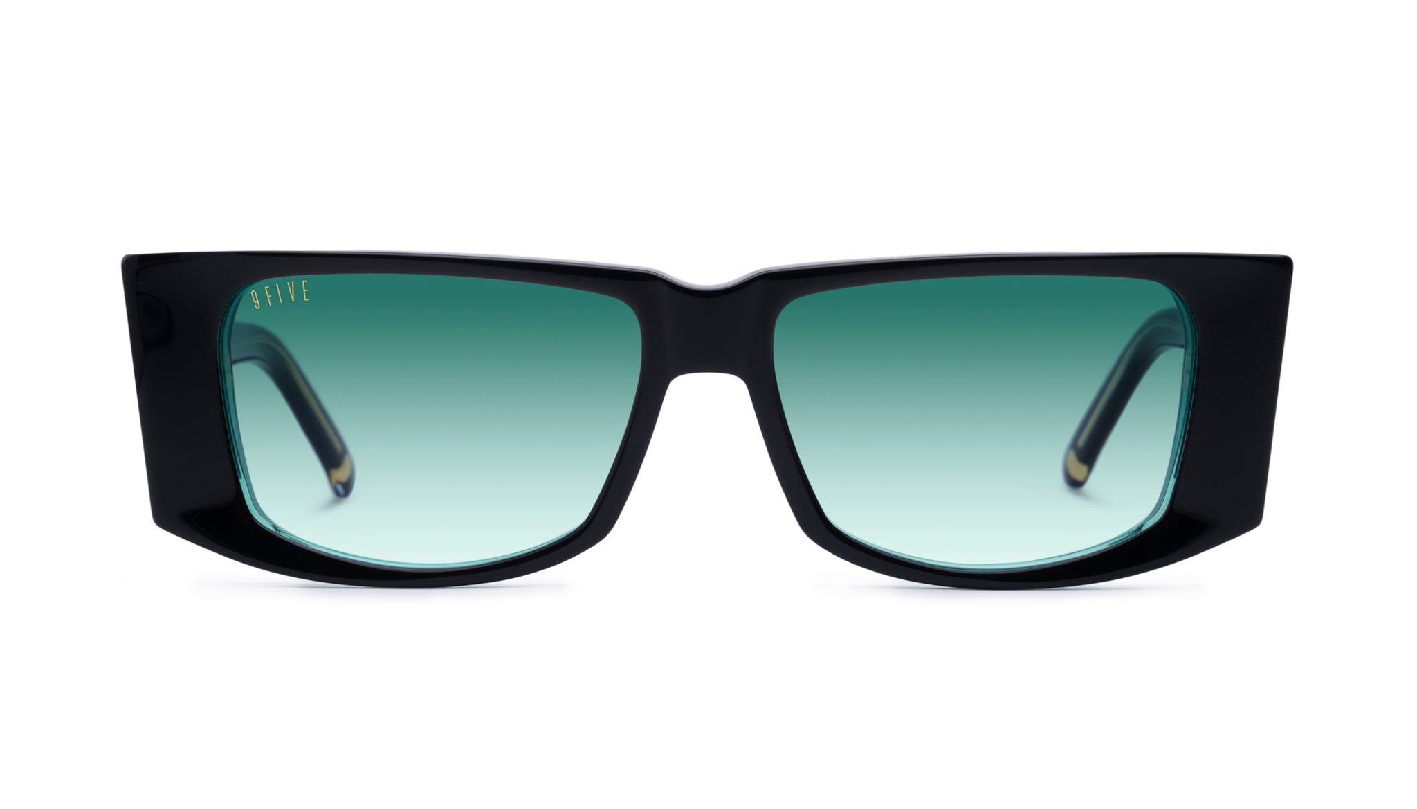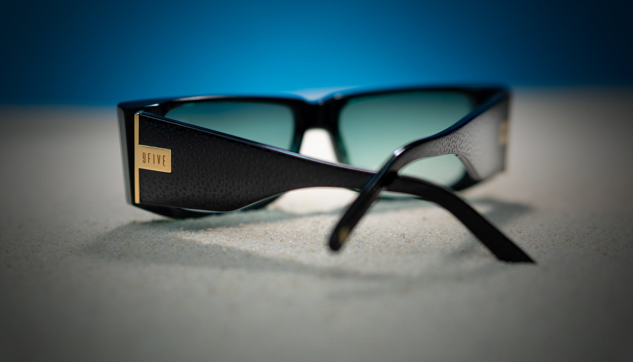 - Gold metal 9FIVE monogram coin embedded on left and right temple tip