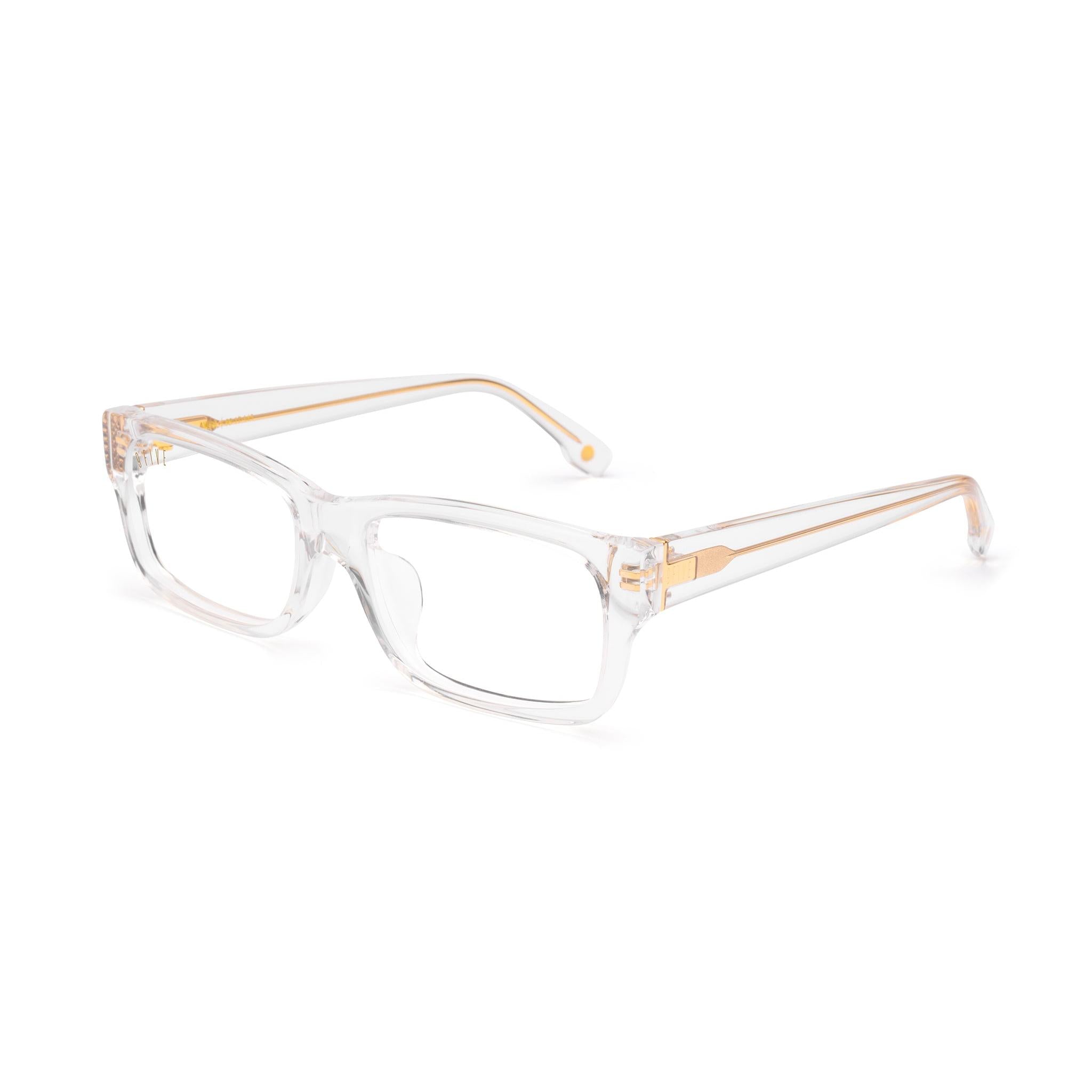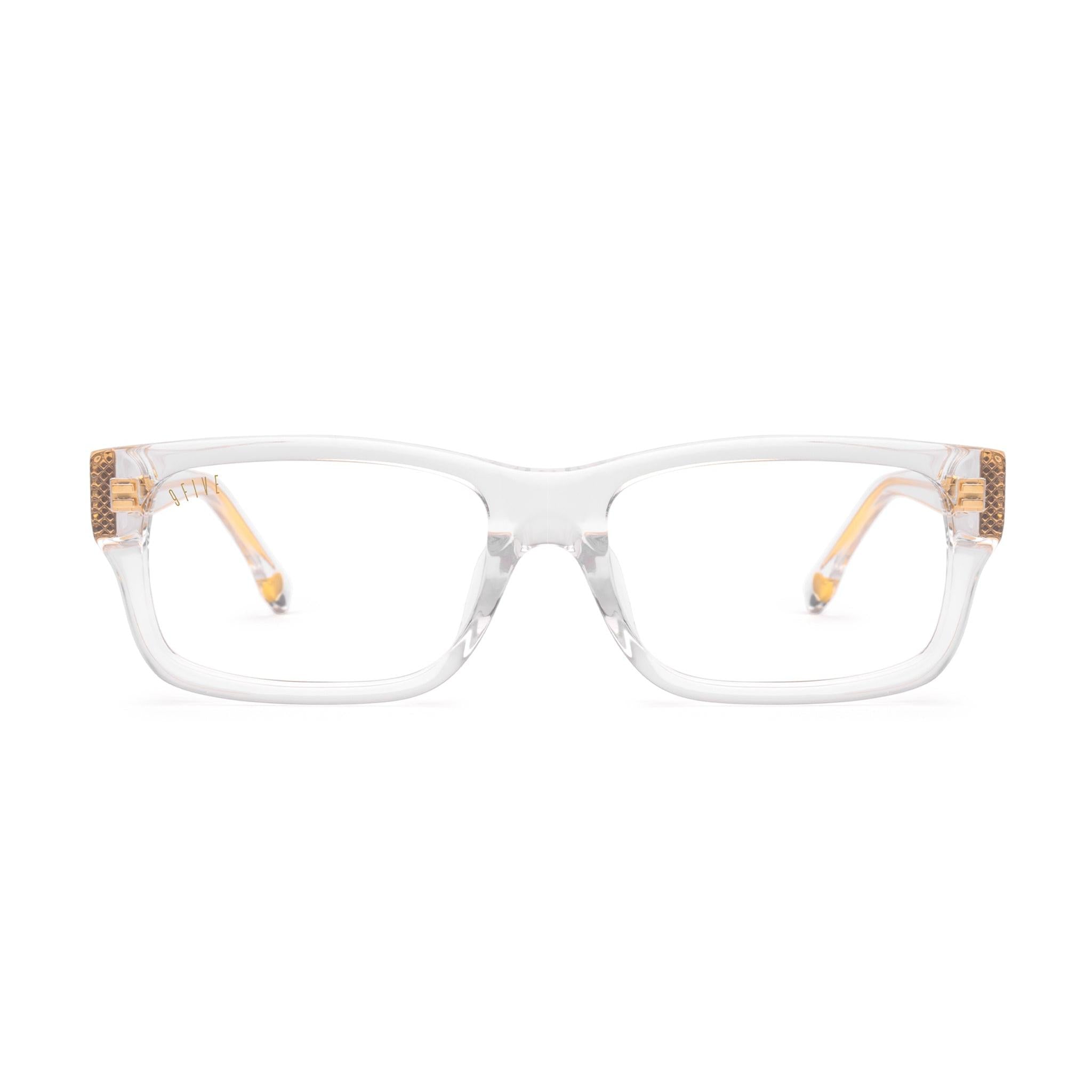 - Crystal clear acetate frame and temples