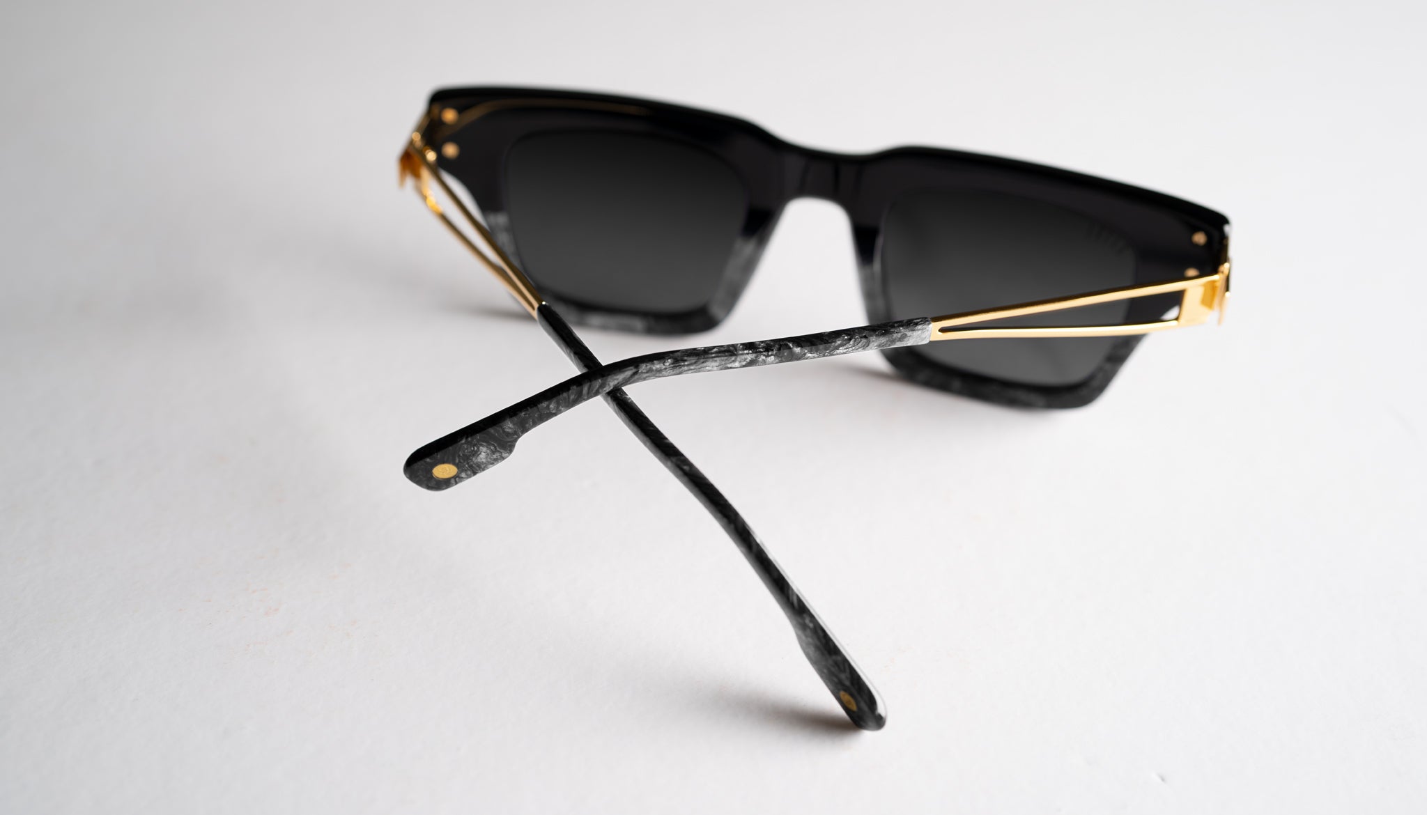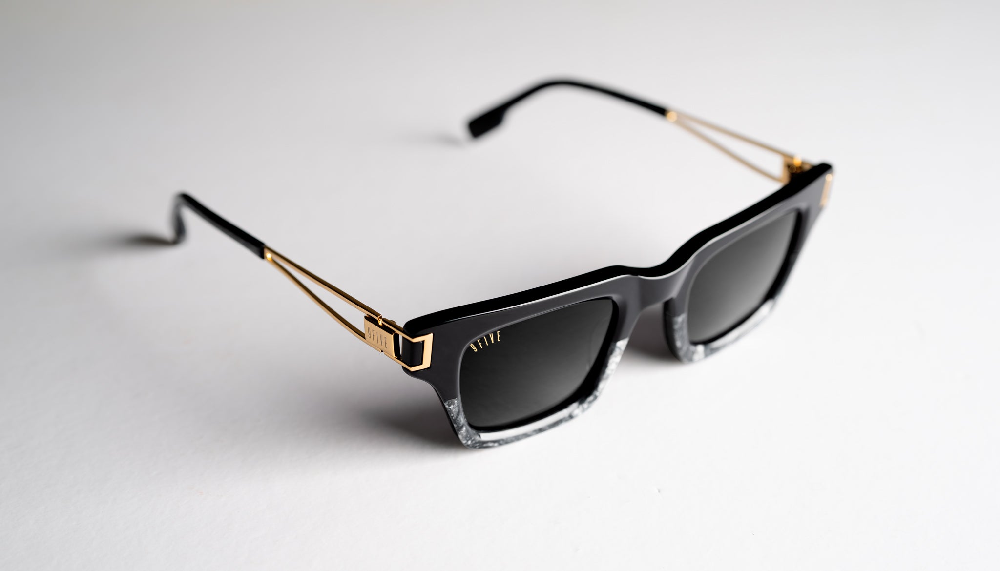- Gold metal 9FIVE monogram coin embedded on left and right temple tip
