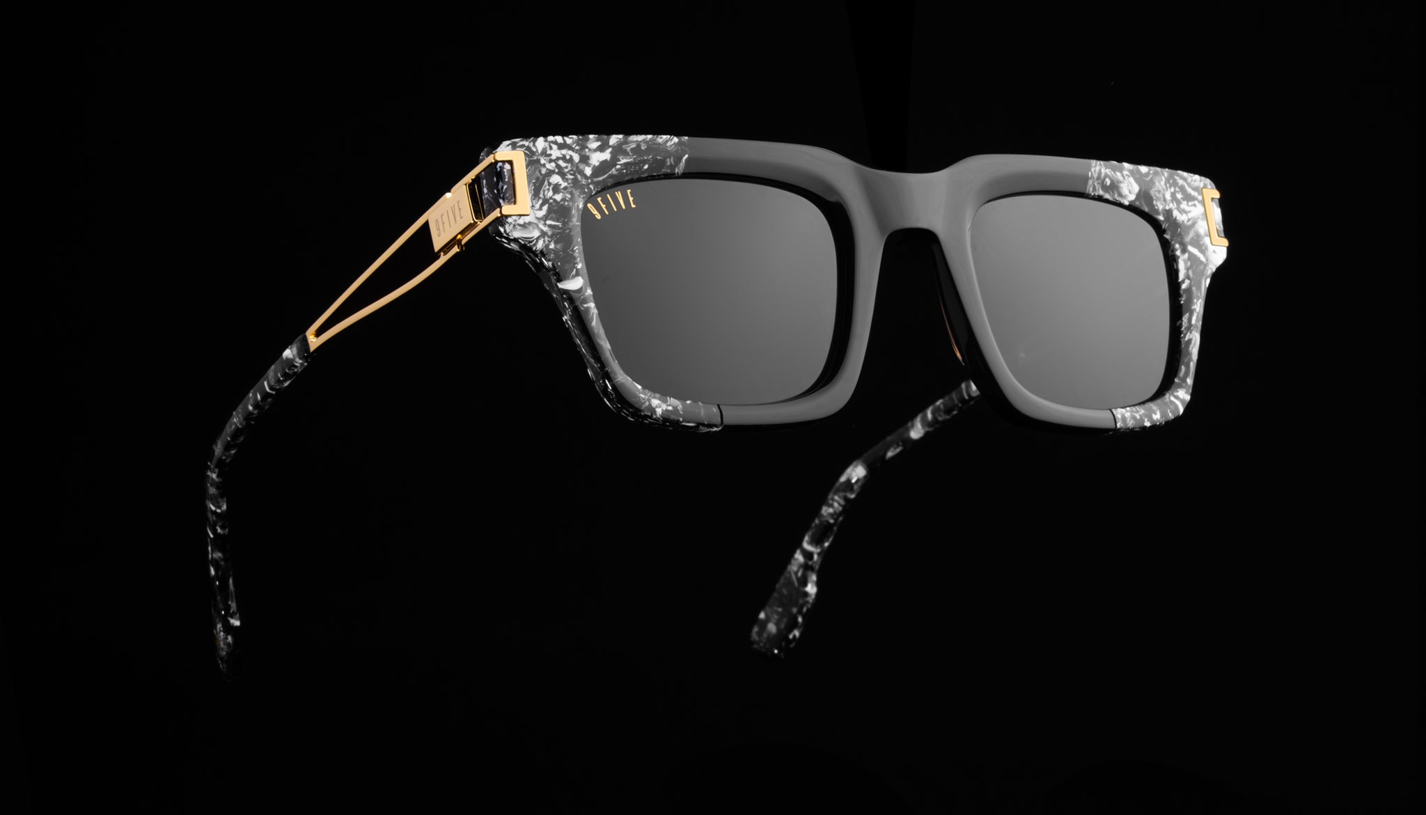 • Gold metal 9FIVE monogram coin embedded on left and right temple tip