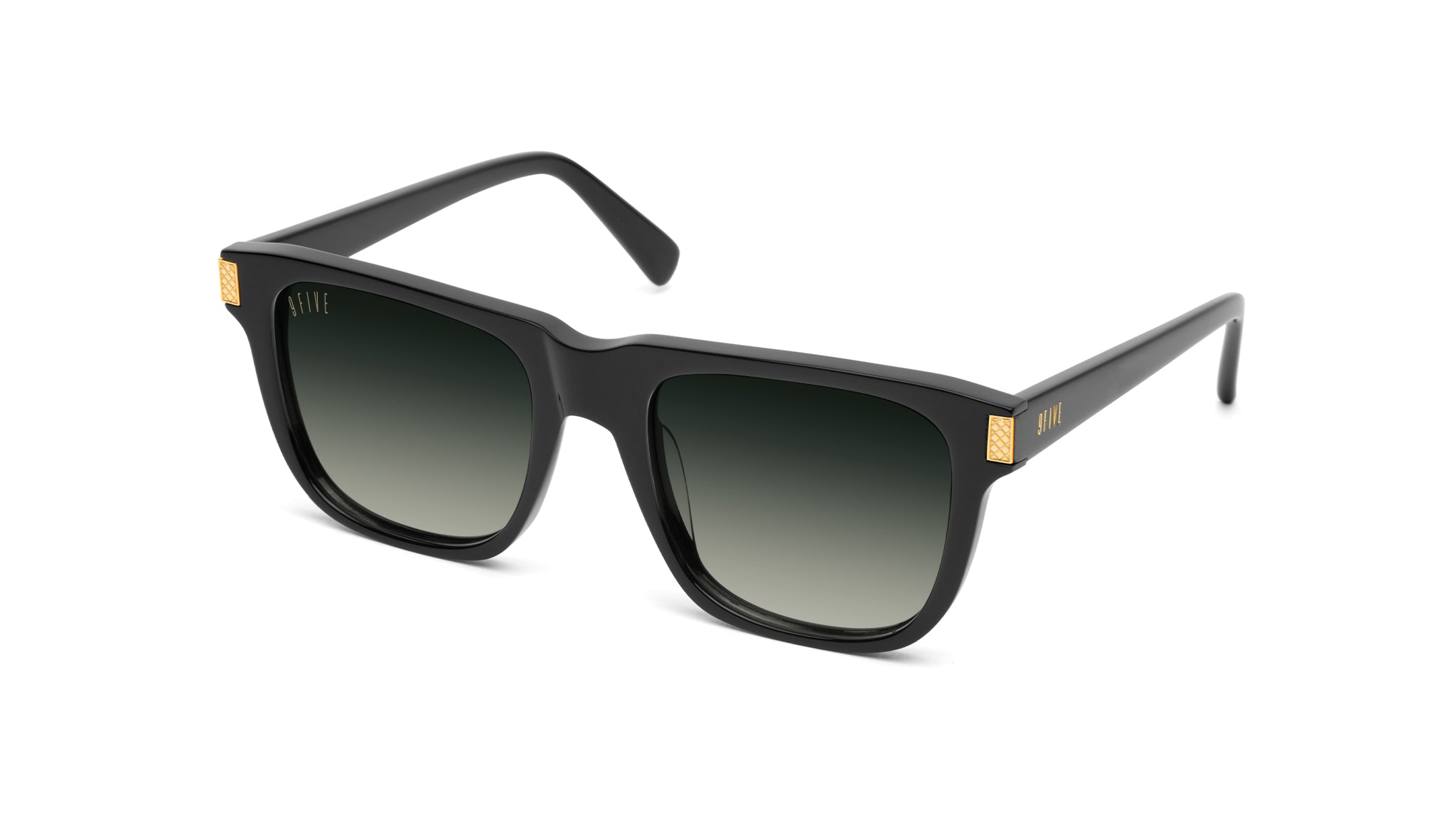 - Black Pure Polarized or CR-39 (100% UV Protection) lens with gold printed 9FIVE logo
