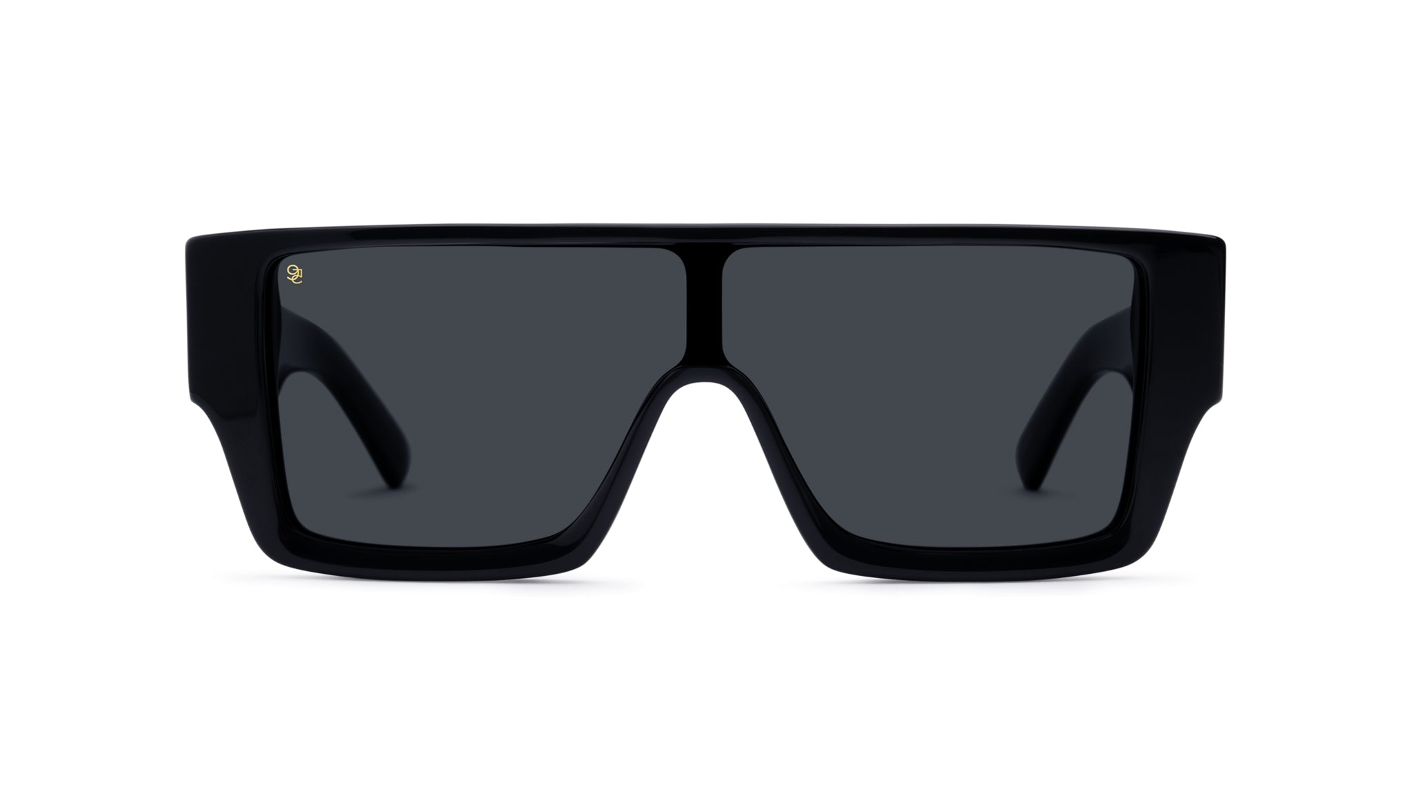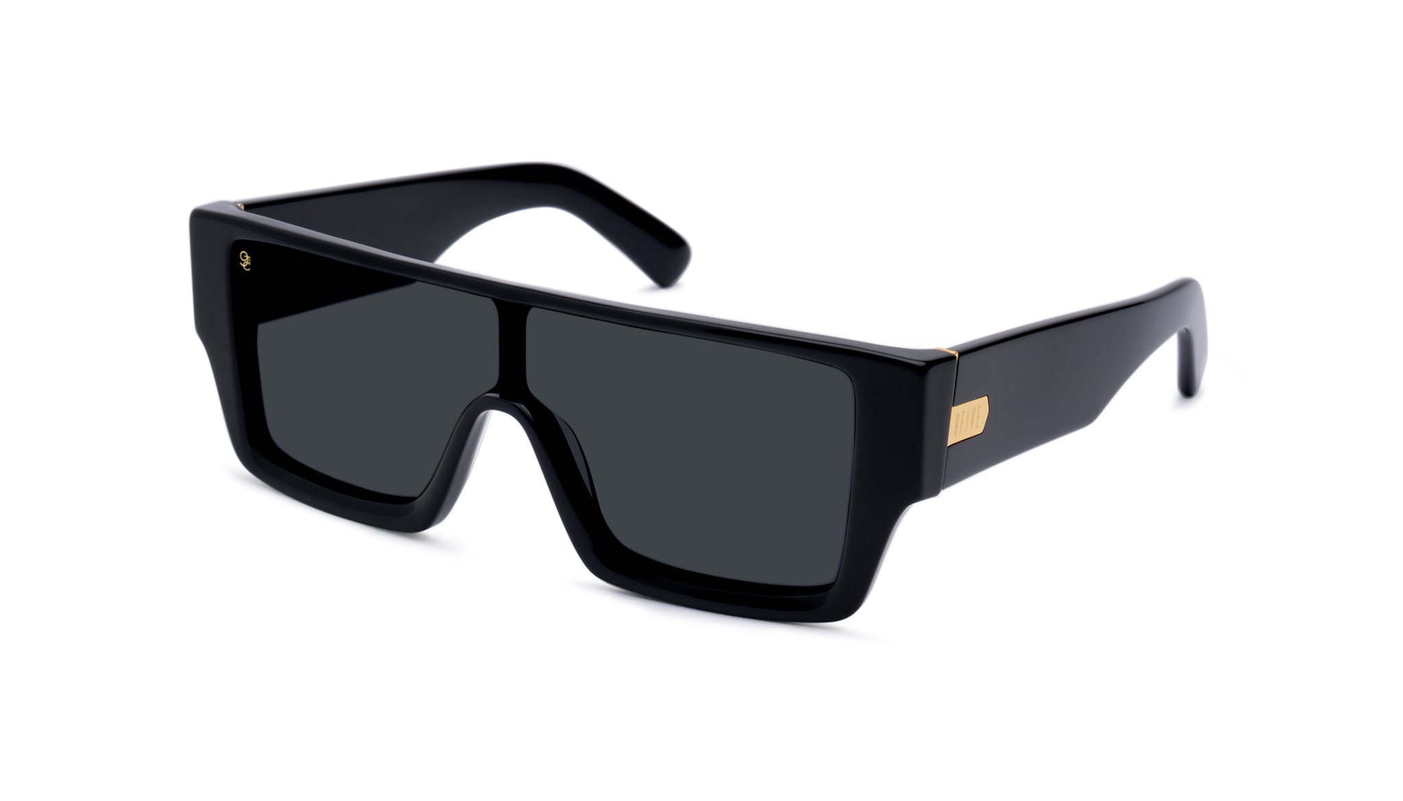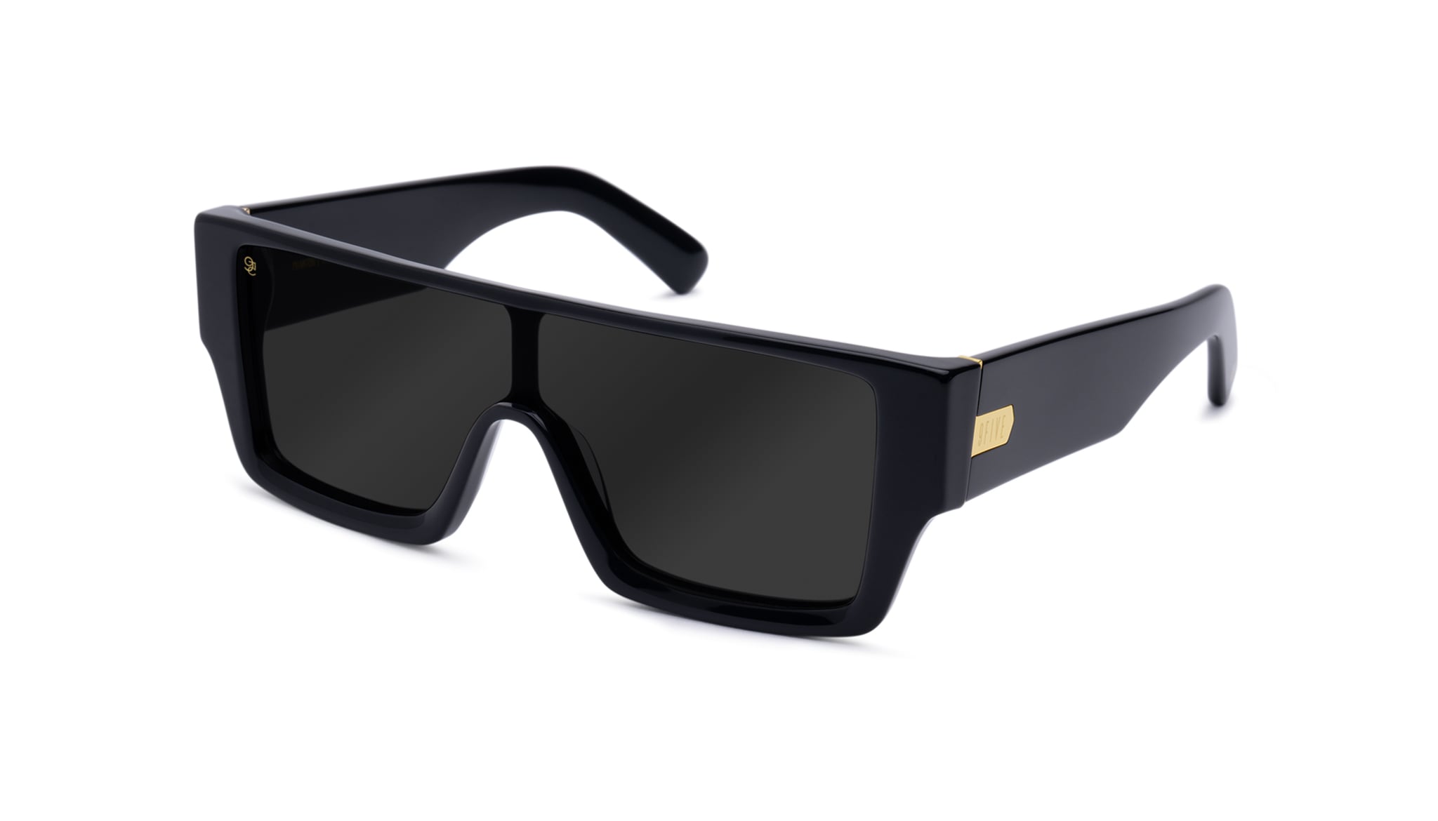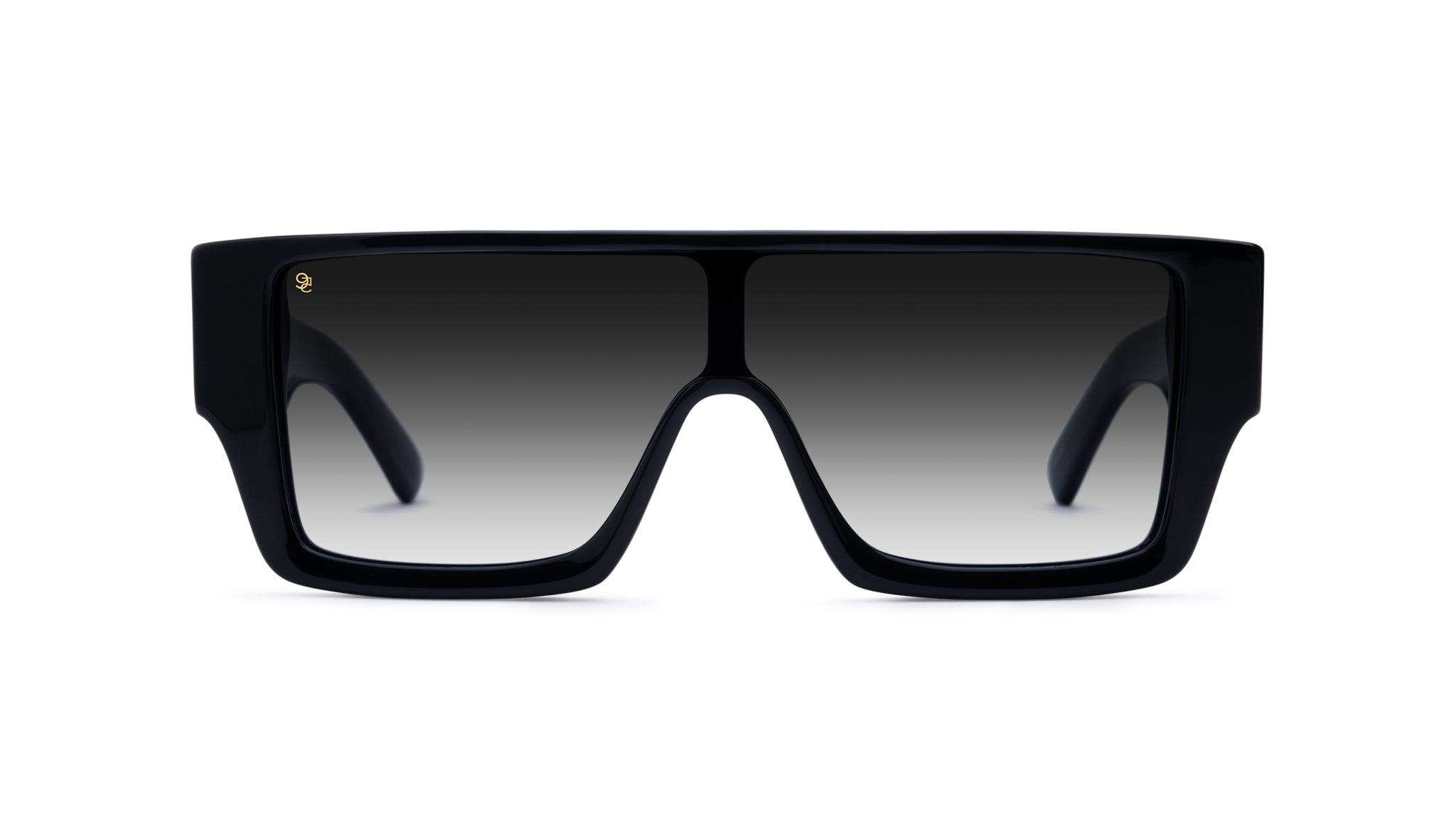 • Glossy black frame and temples with 24k gold plated stainless steel accents