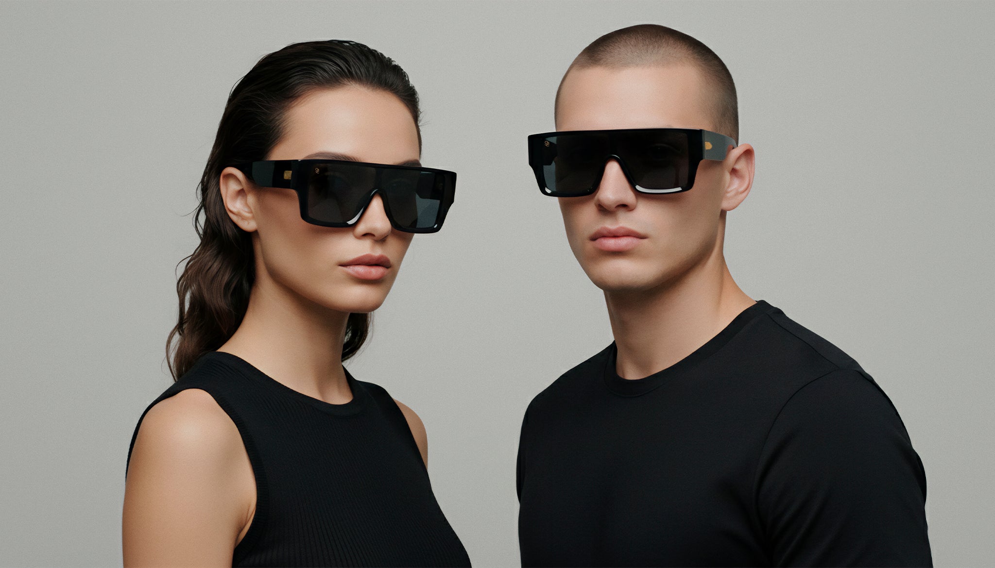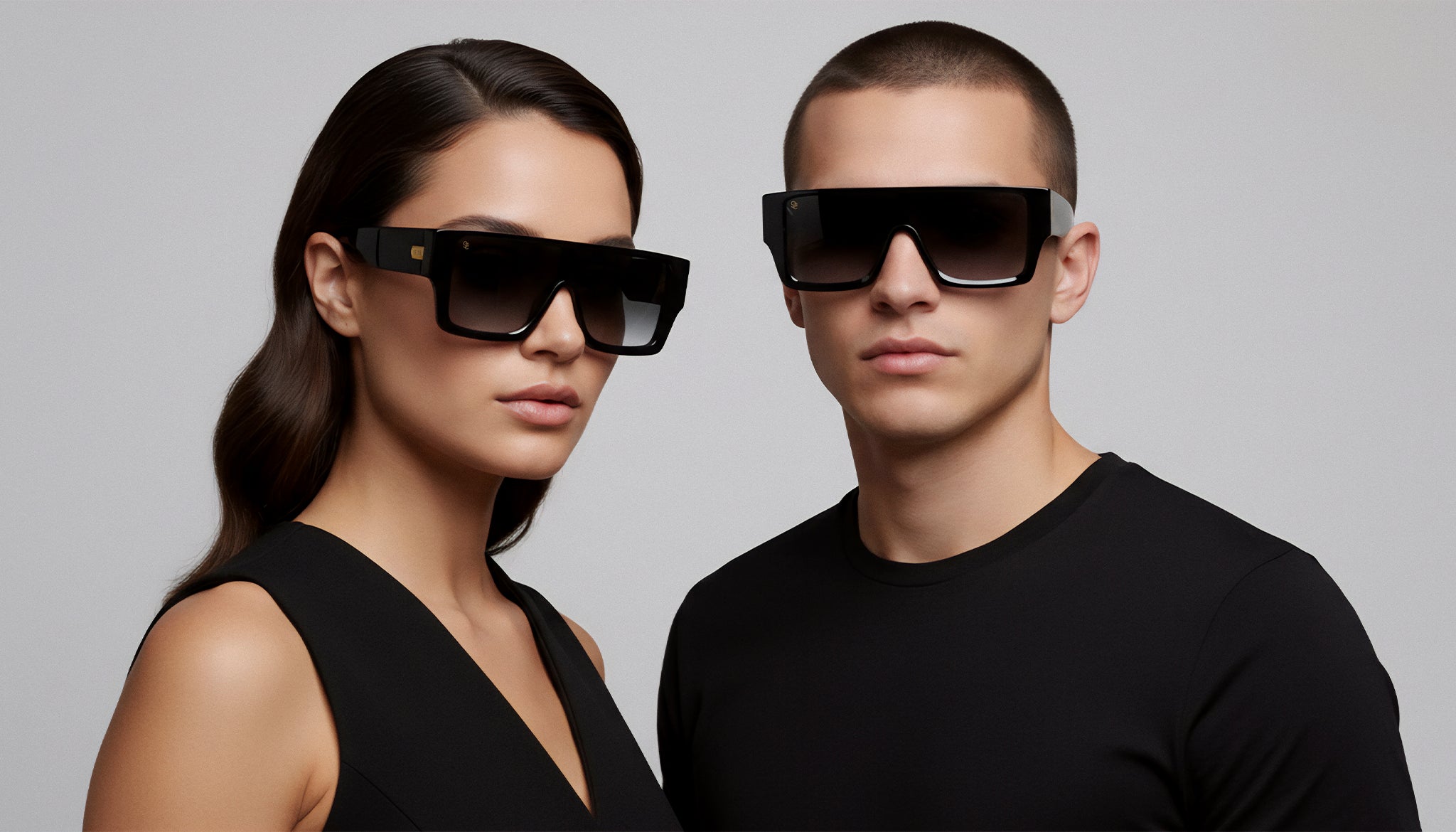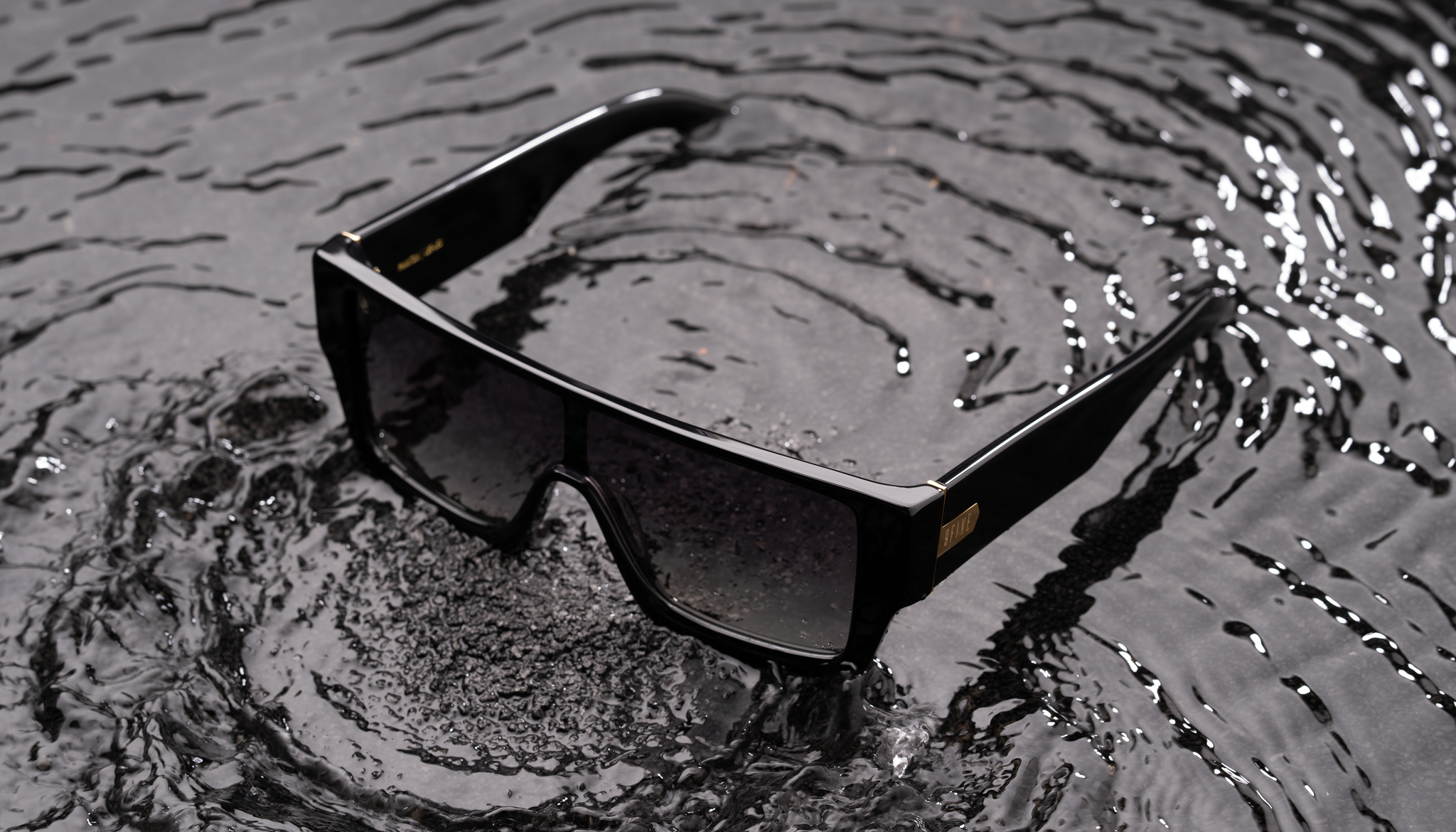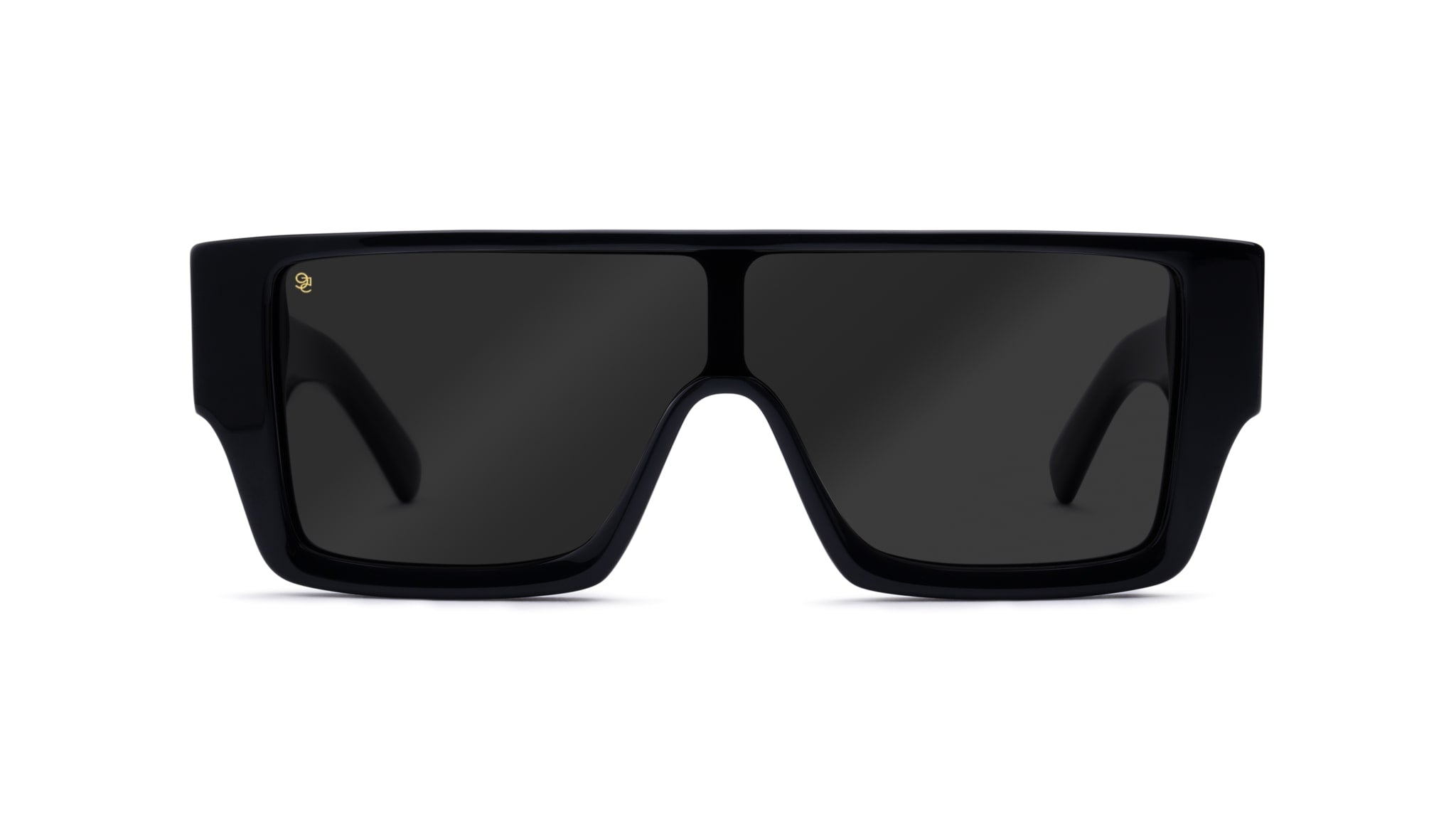 • Glossy black frame and temples with 24k gold plated stainless steel accents