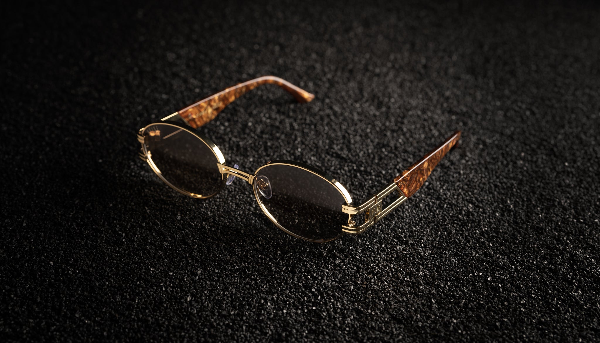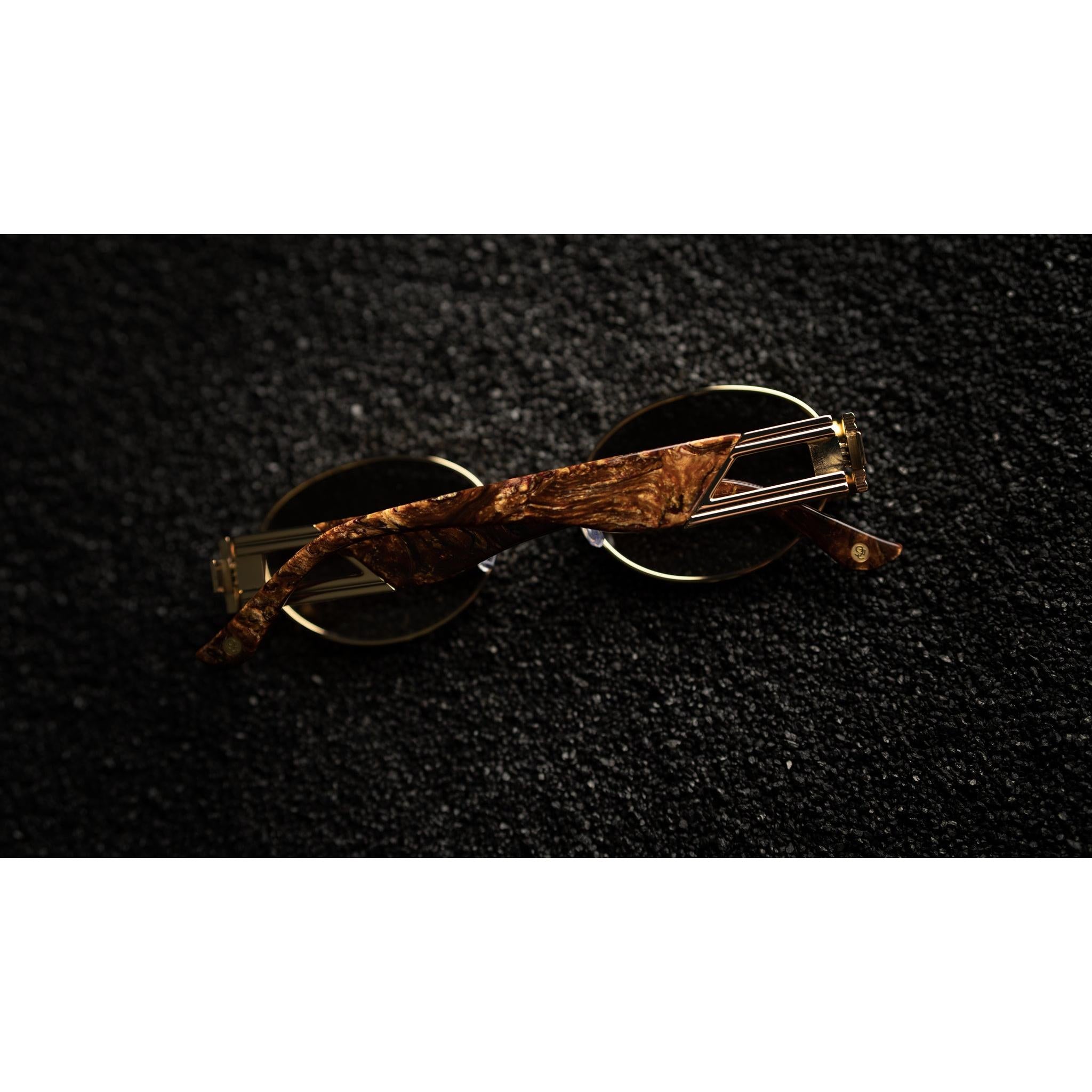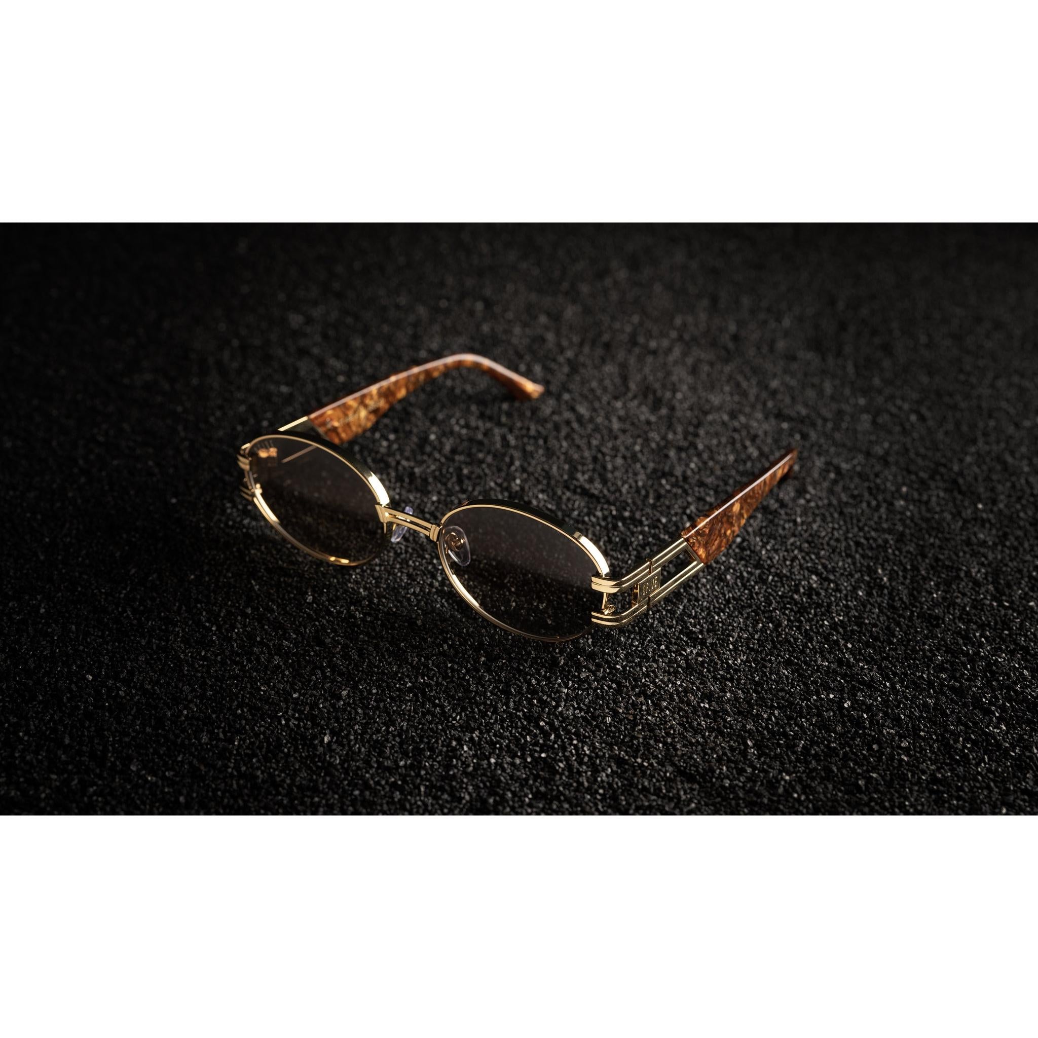 - 24k gold plated metal frame and temple segments