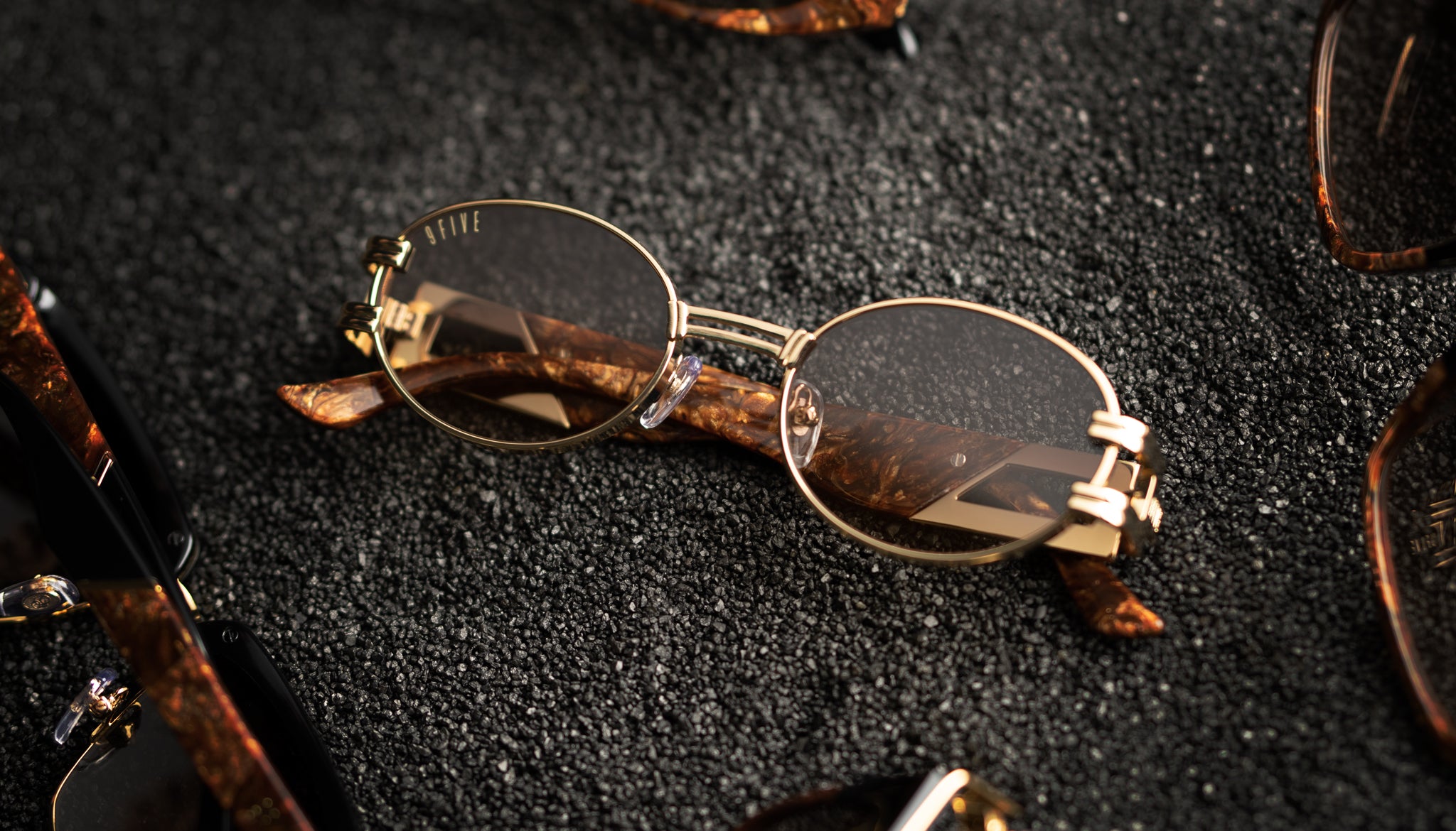 - 9FIVE Signature logo laser engraved on outer right and left temples