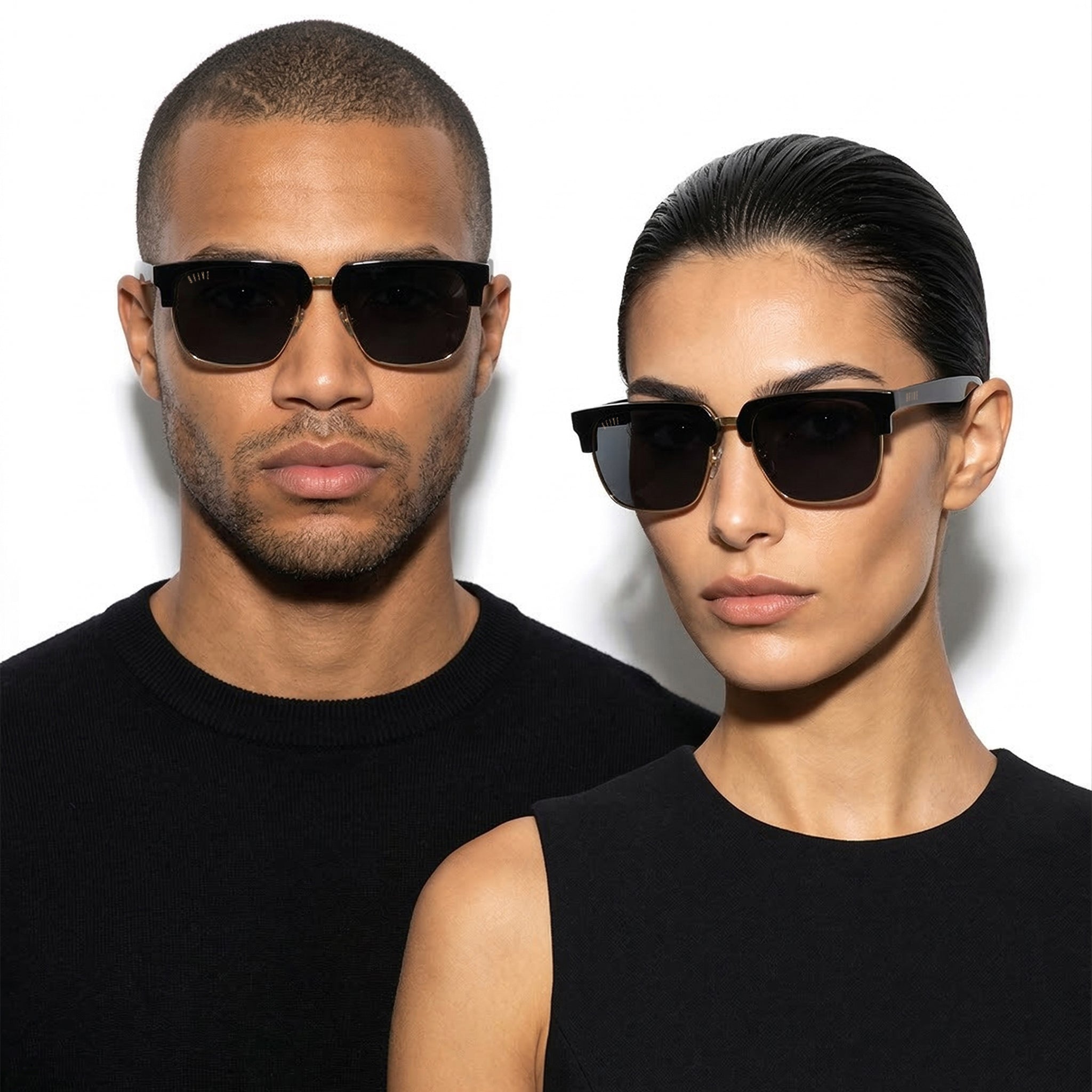 - Gold metal 9FIVE monogram coin embedded on left and right temple tip