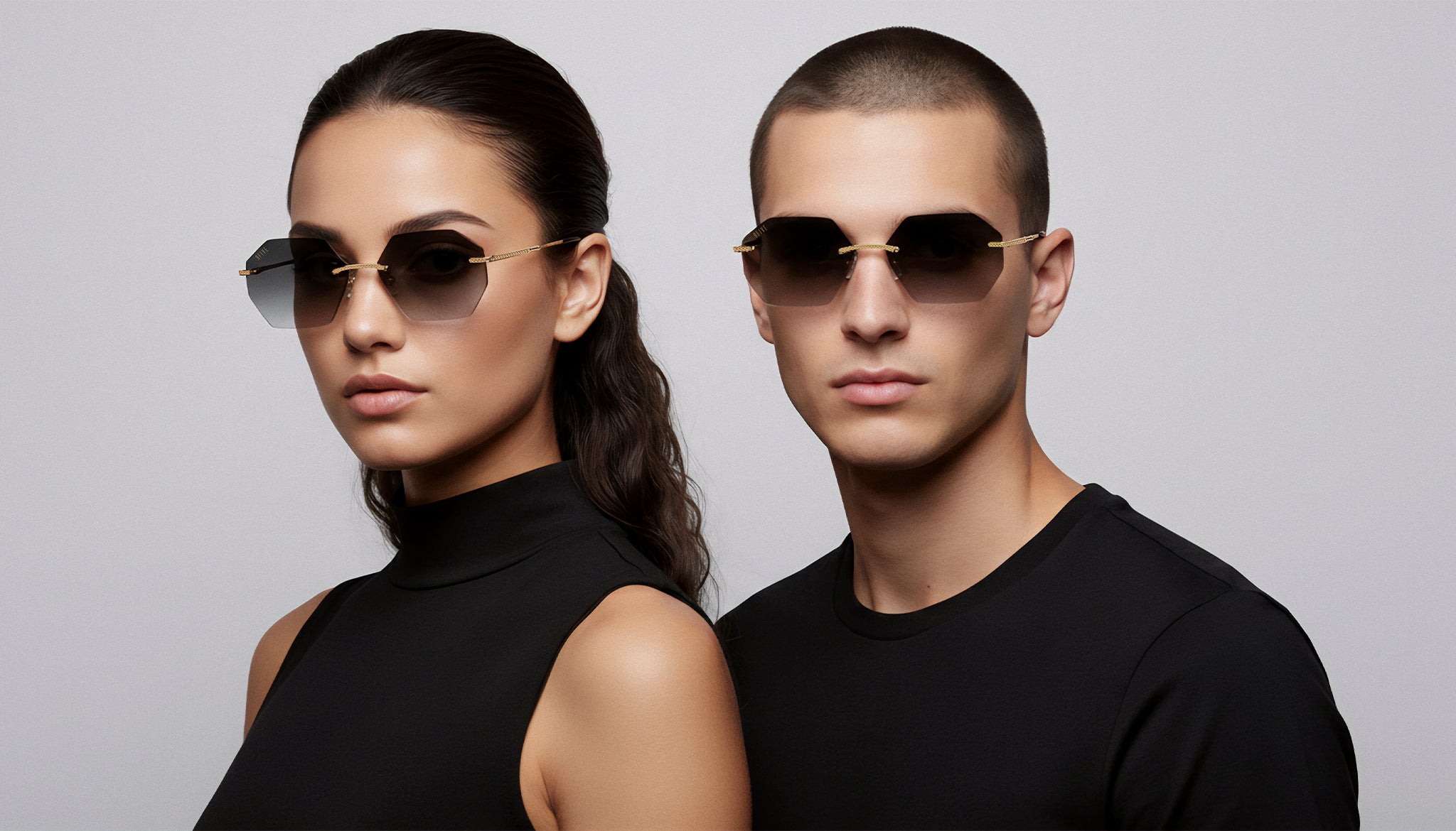 - Rimless black Pure Polarized or CR-39 (100% UV Protection) lens with 9FIVE logo on lens