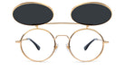 - Attached tinted lens frame, flip-up for clear lens or down for sunglasses