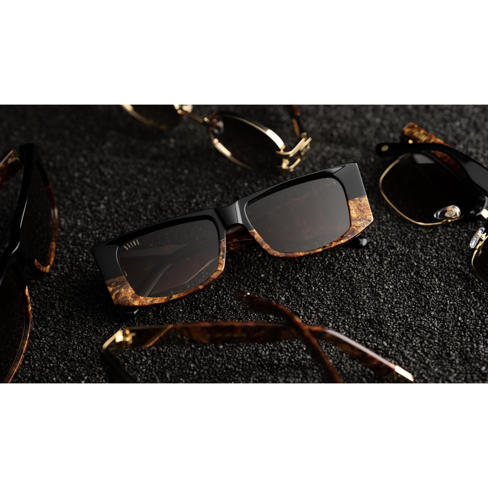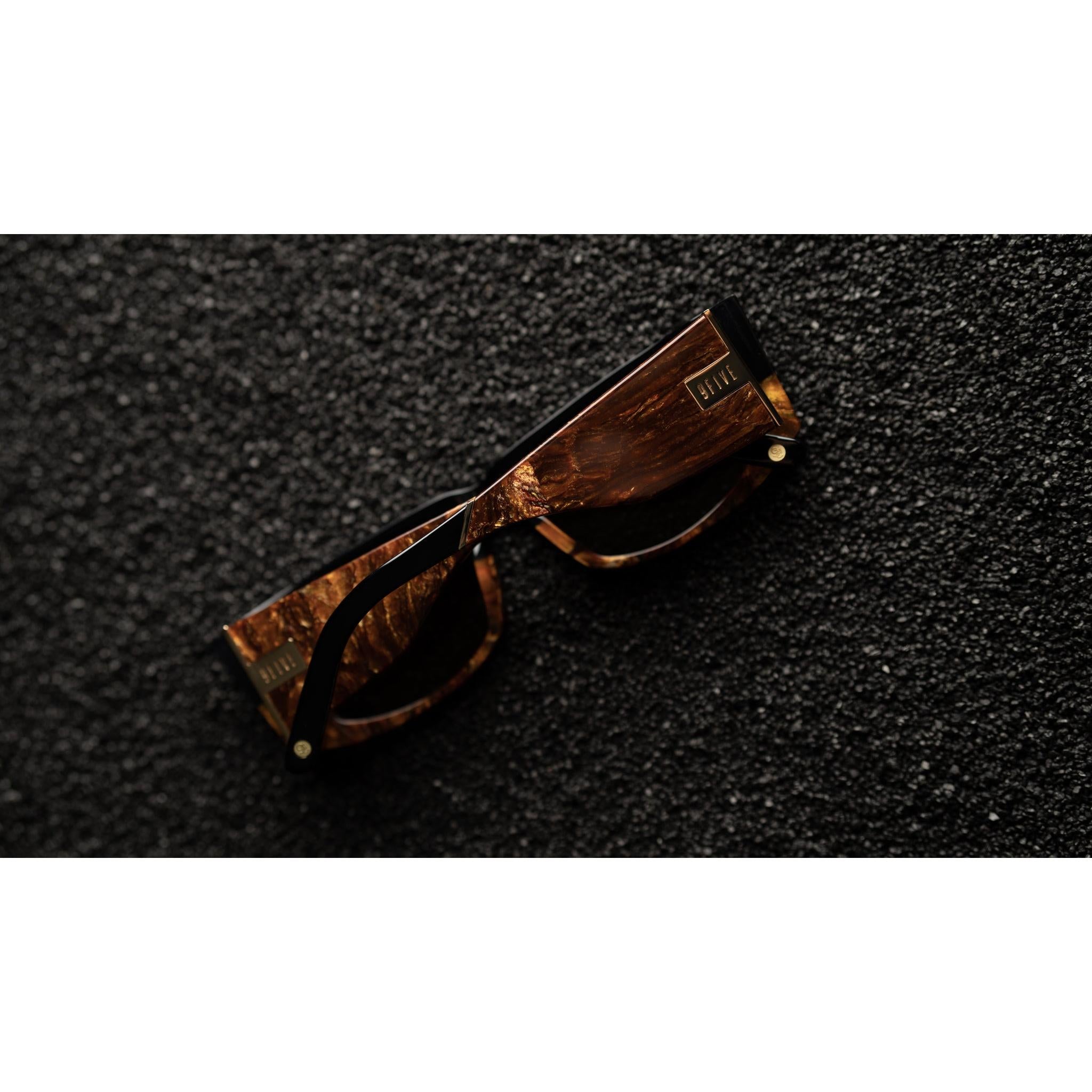- Gold metal 9FIVE monogram coin embedded on left and right temple tip