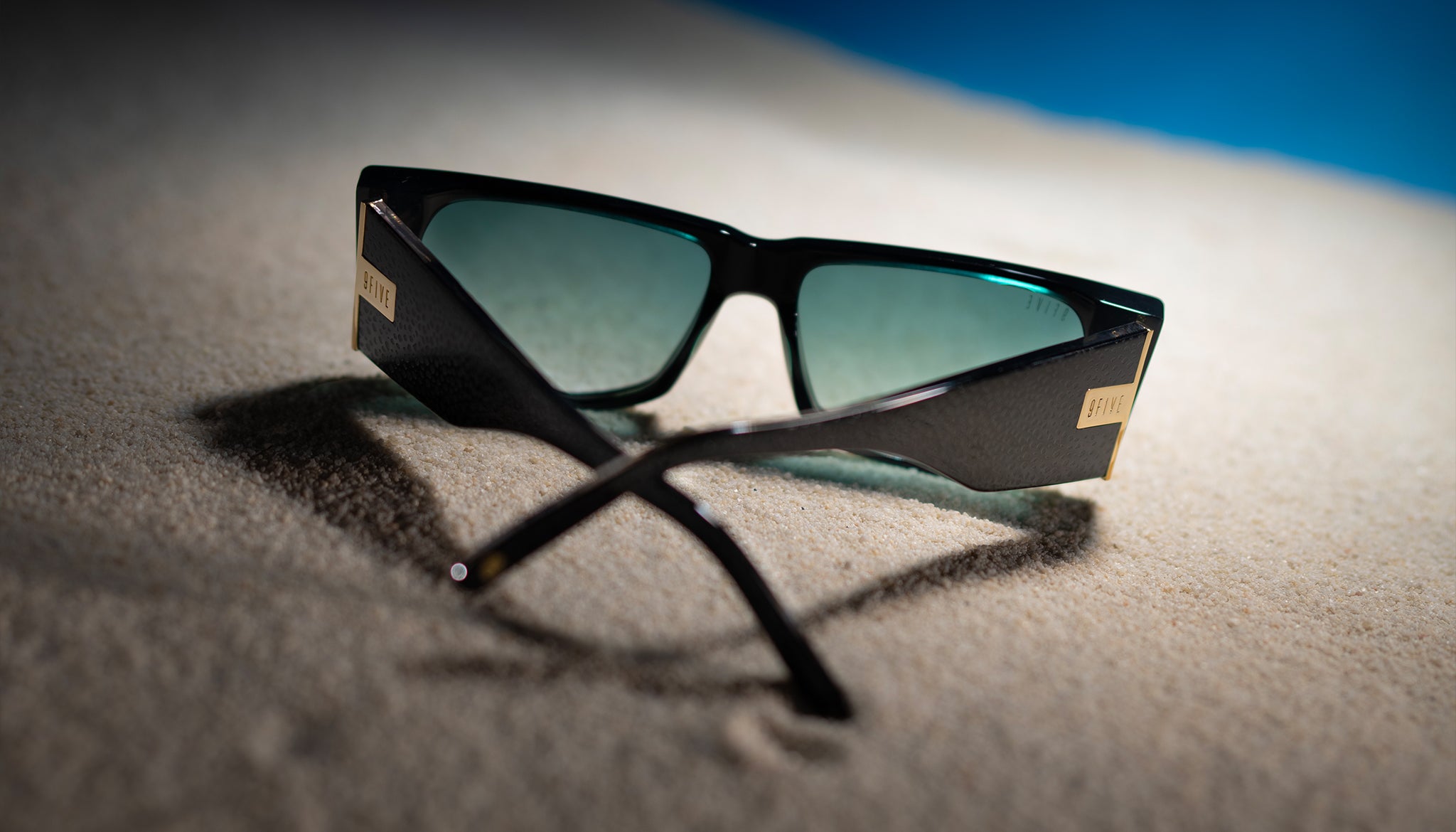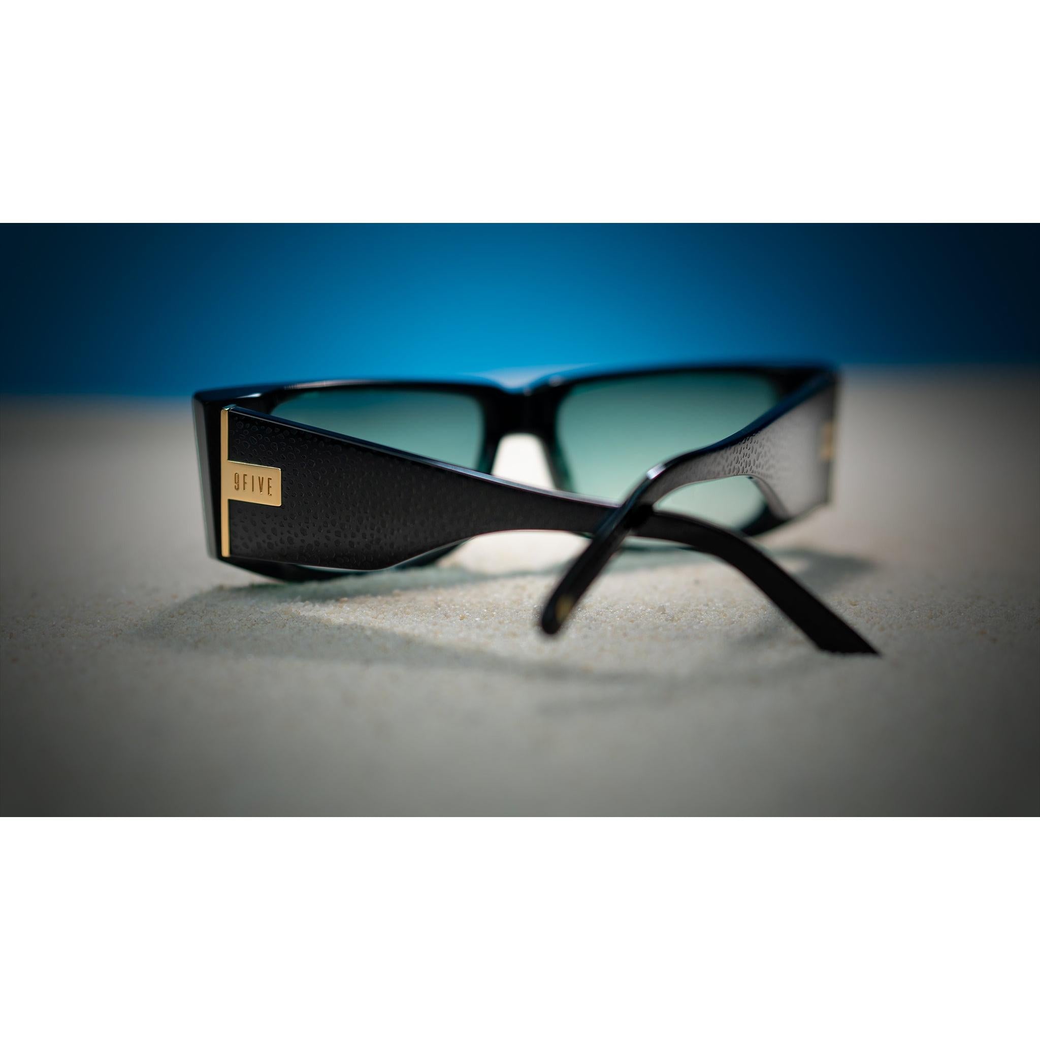 - Gold metal 9FIVE monogram coin embedded on left and right temple tip