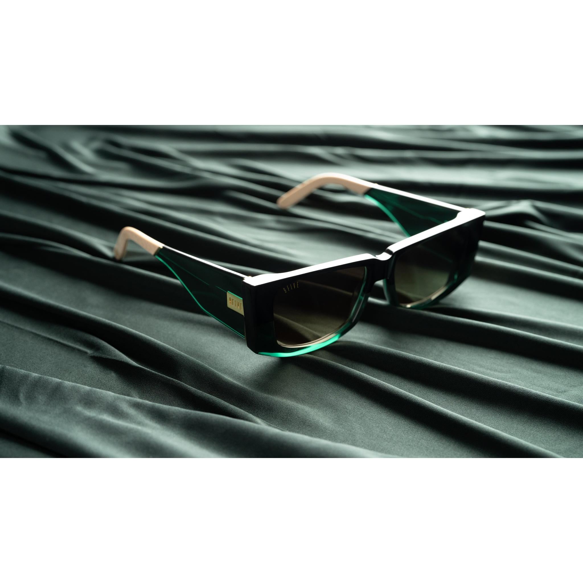 - Gold metal 9FIVE monogram coin embedded on left and right temple tip