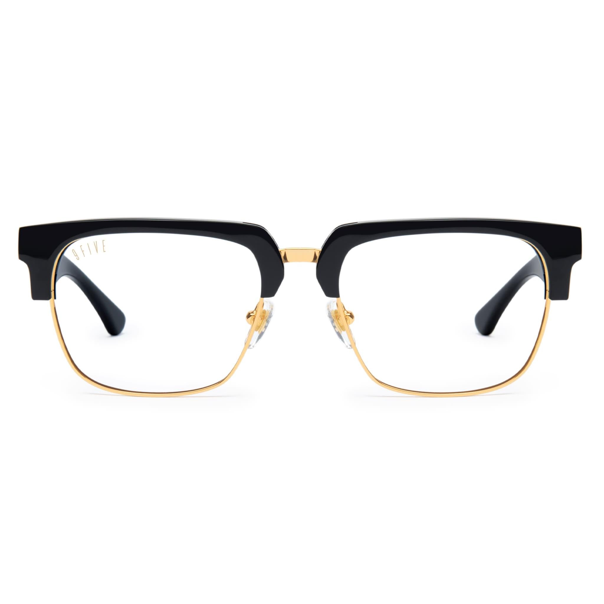 - Gold metal 9FIVE monogram coin embedded on left and right temple tip
