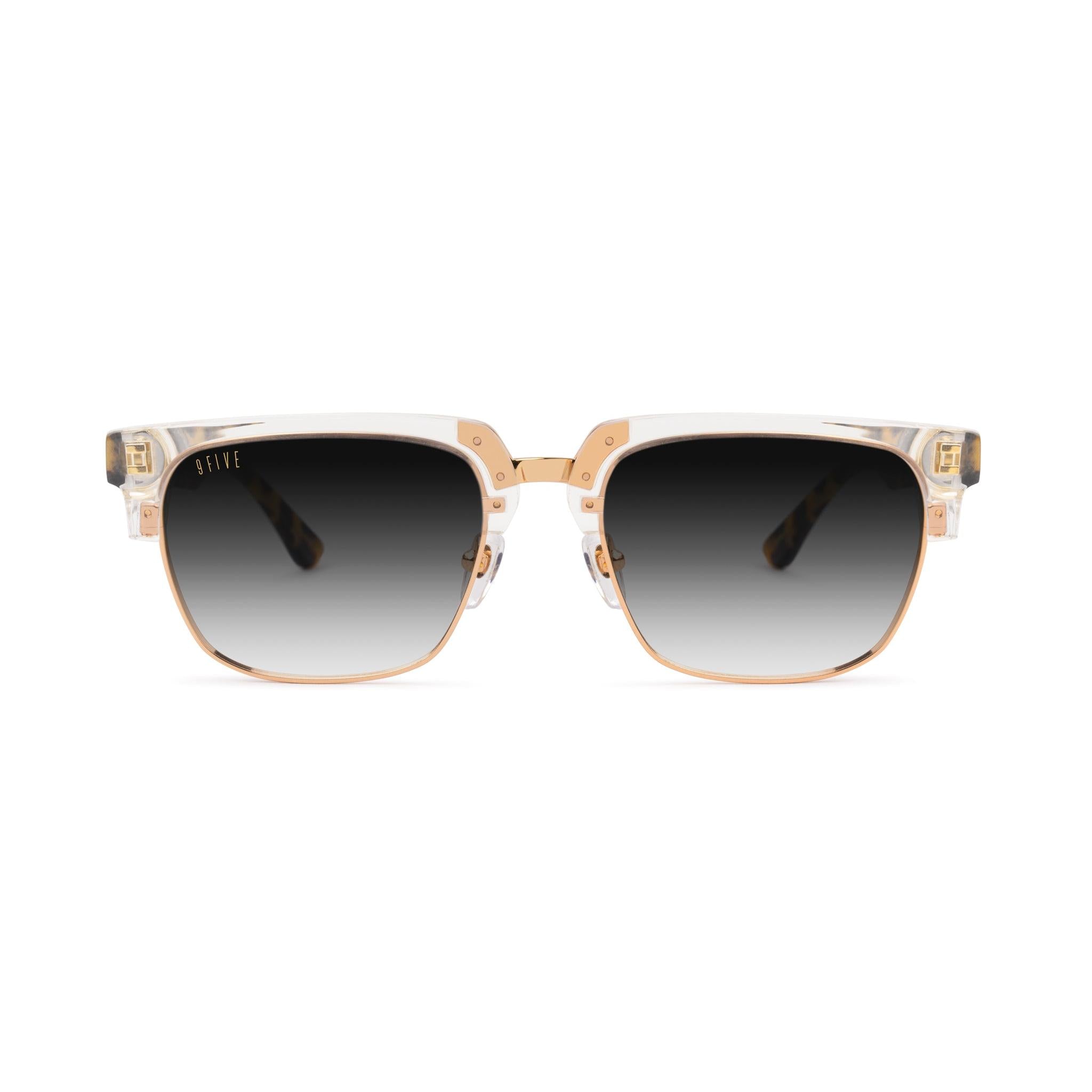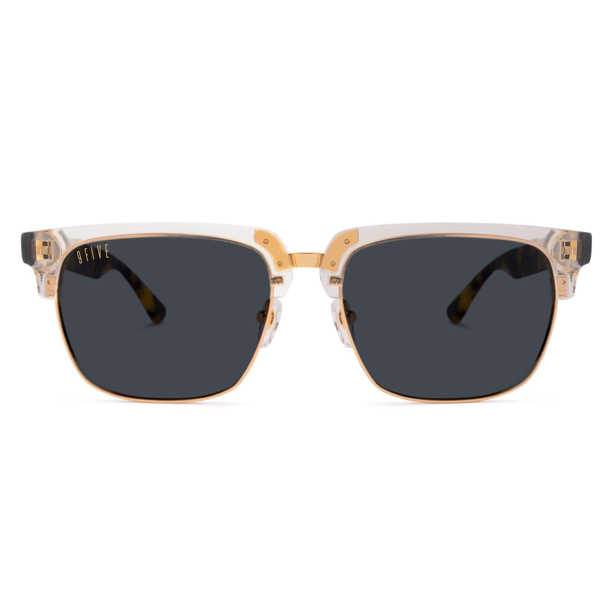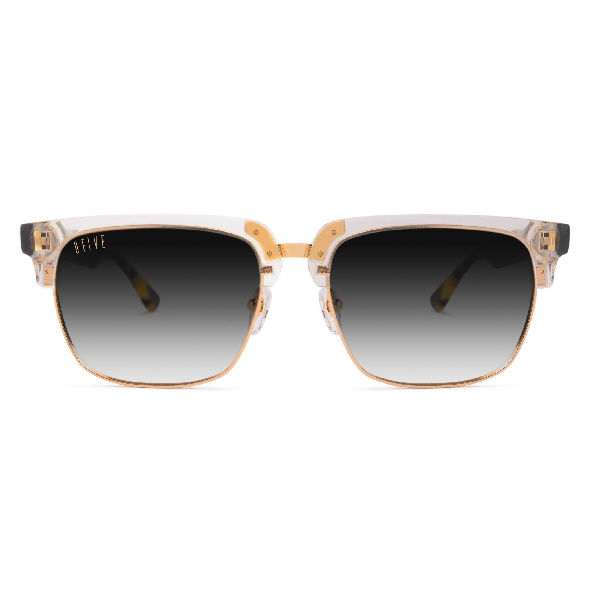 - Gold metal 9FIVE monogram coin embedded on left and right temple tip