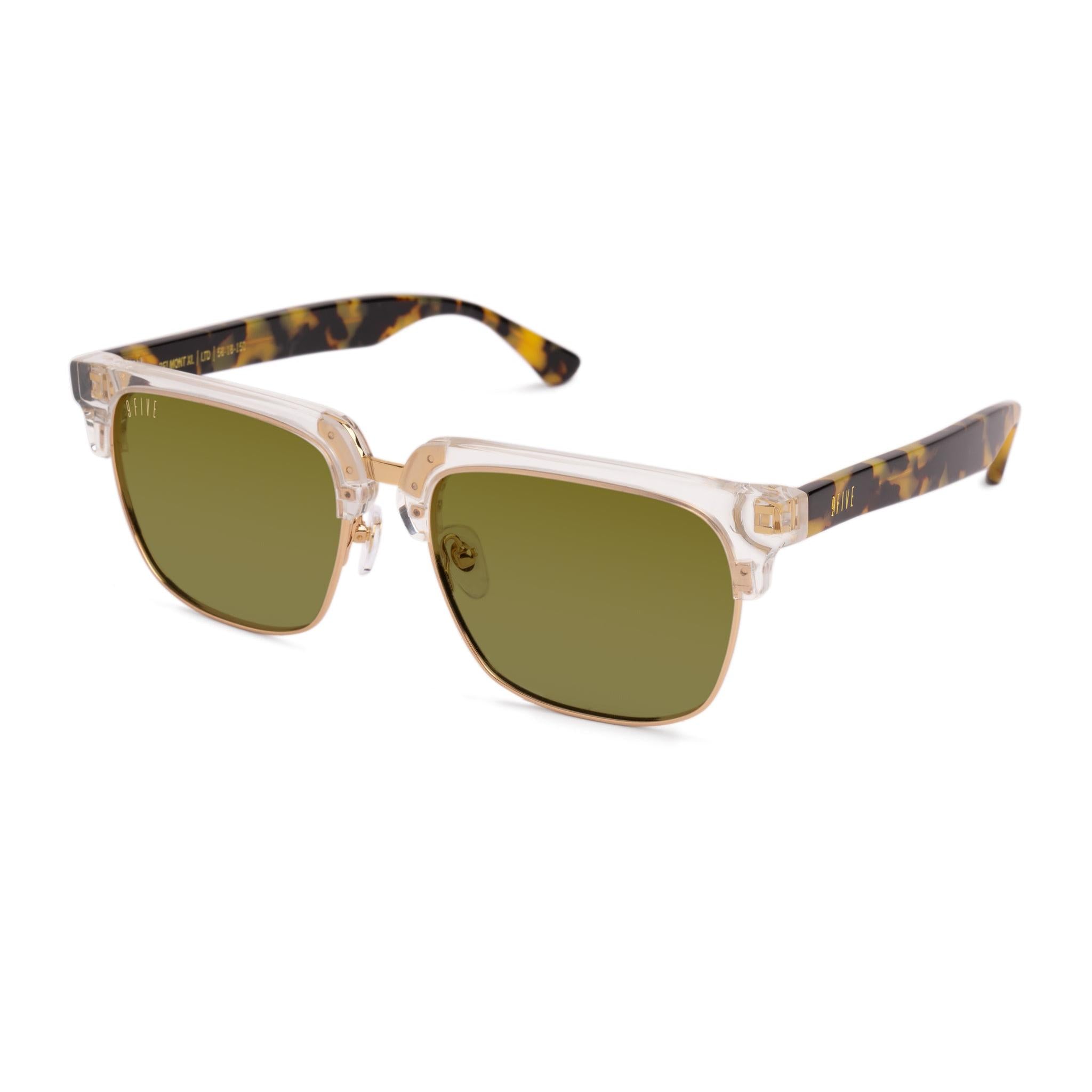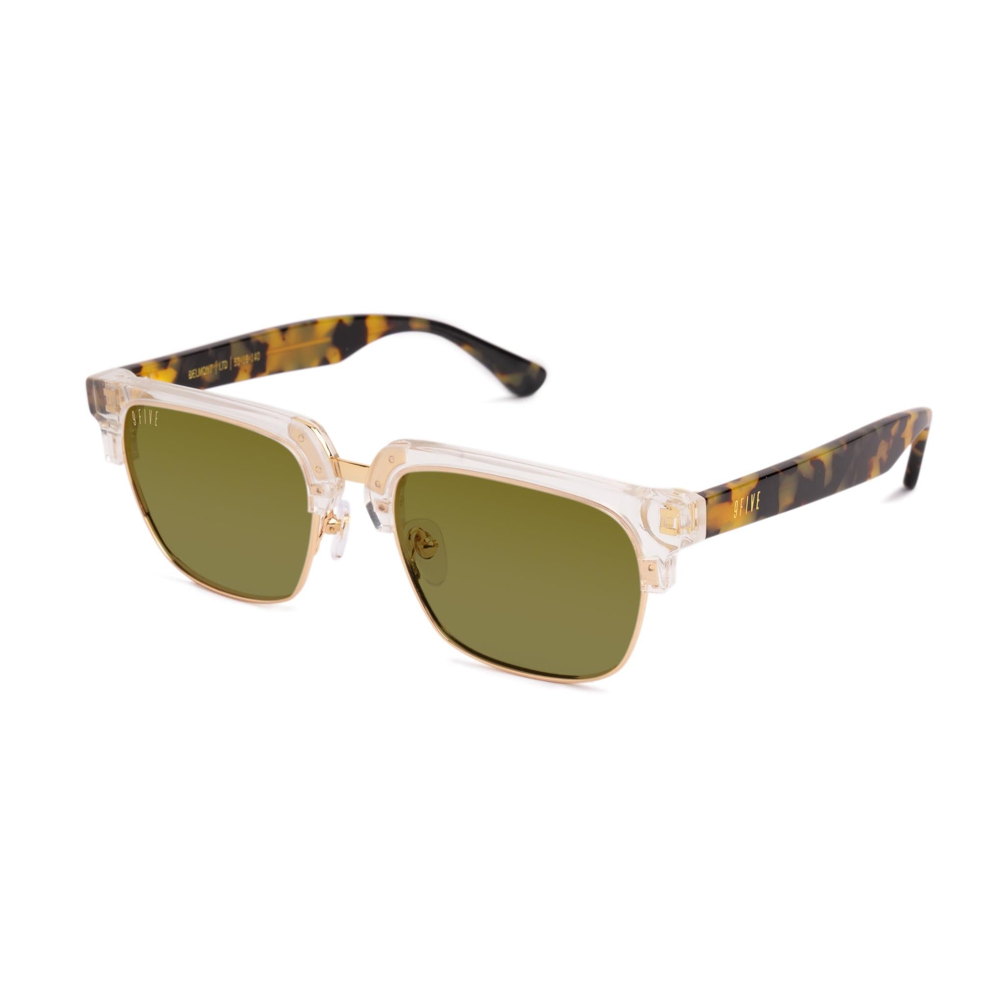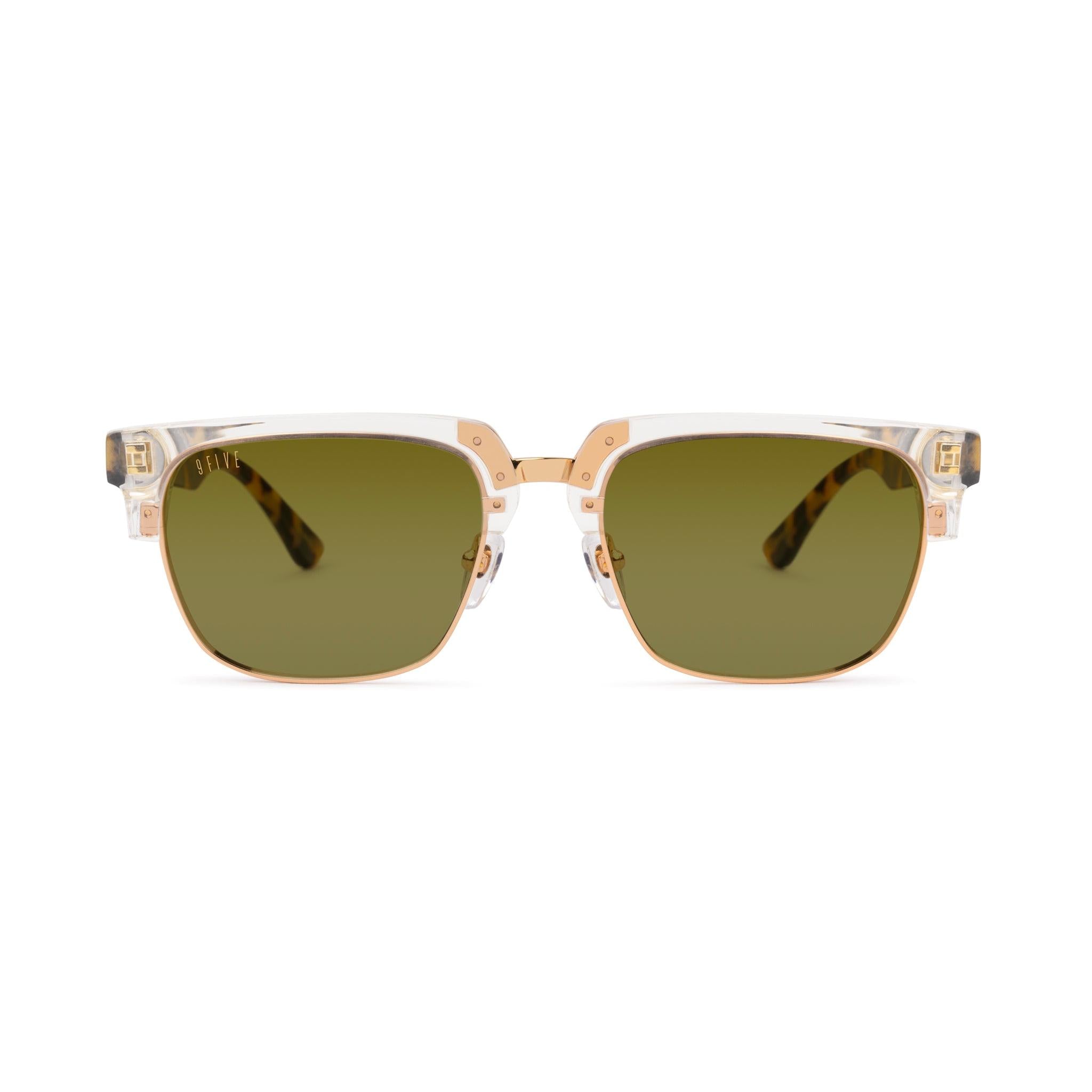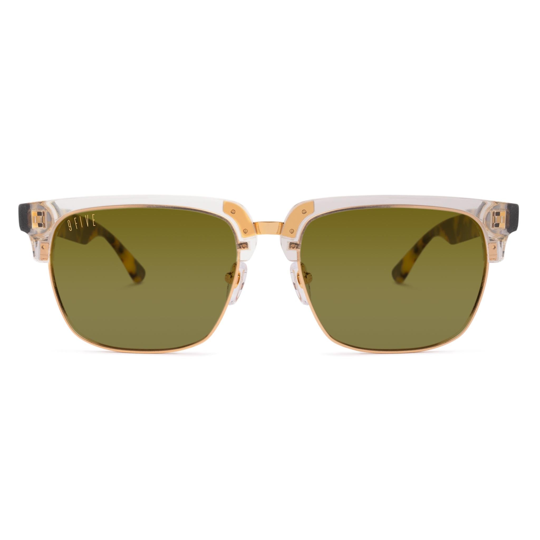 - Gold metal 9FIVE monogram coin embedded on left and right temple tip