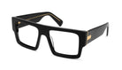 - Glossy black frame and temples with 24k gold plated stainless steel accents