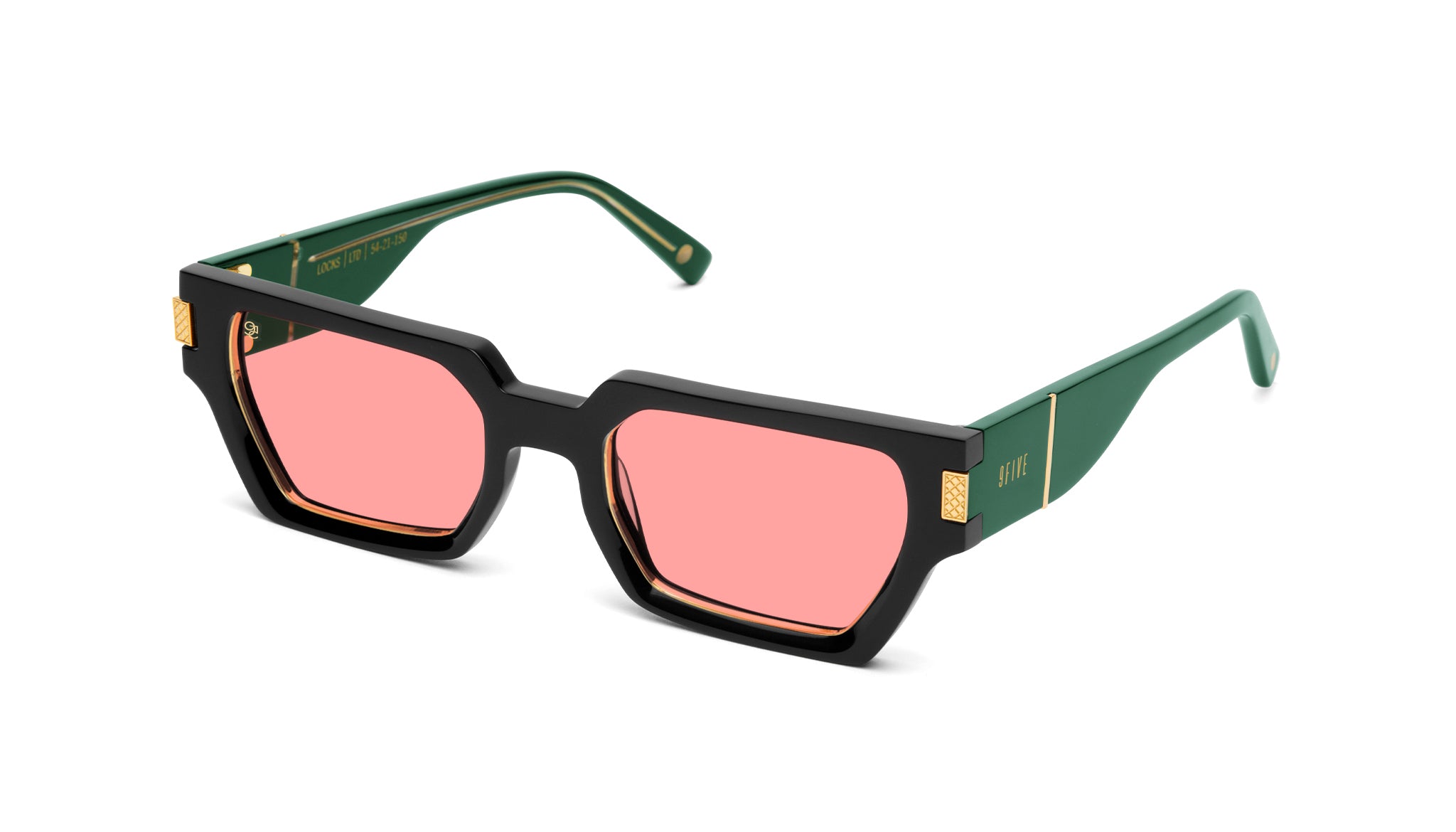 - Gold 9FIVE logo on outer temples