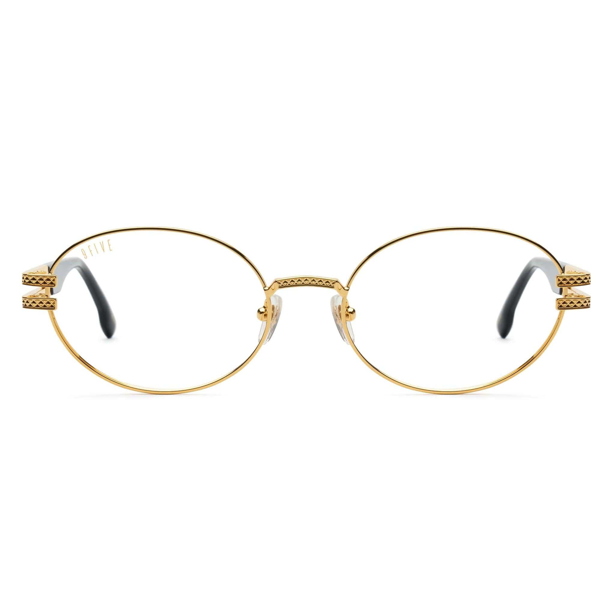 - 24k gold plated metal frame and temple segments with diamond-etch detailing