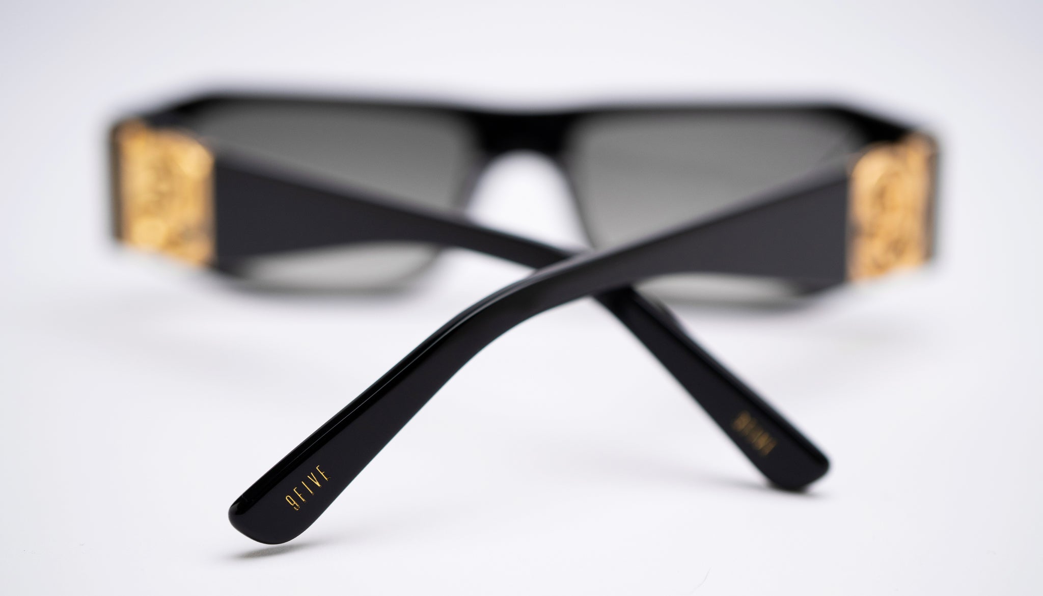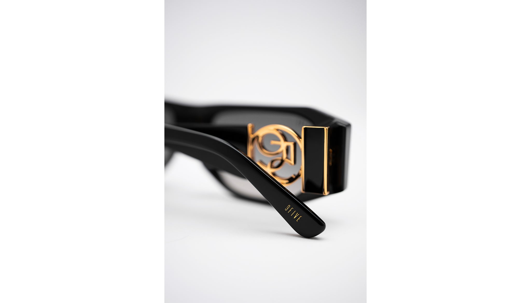 - Gold 9FIVE logo on outer temples