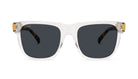 - Clear frame and desert tortoise acetate temples with 24k gold plated stainless steel accents