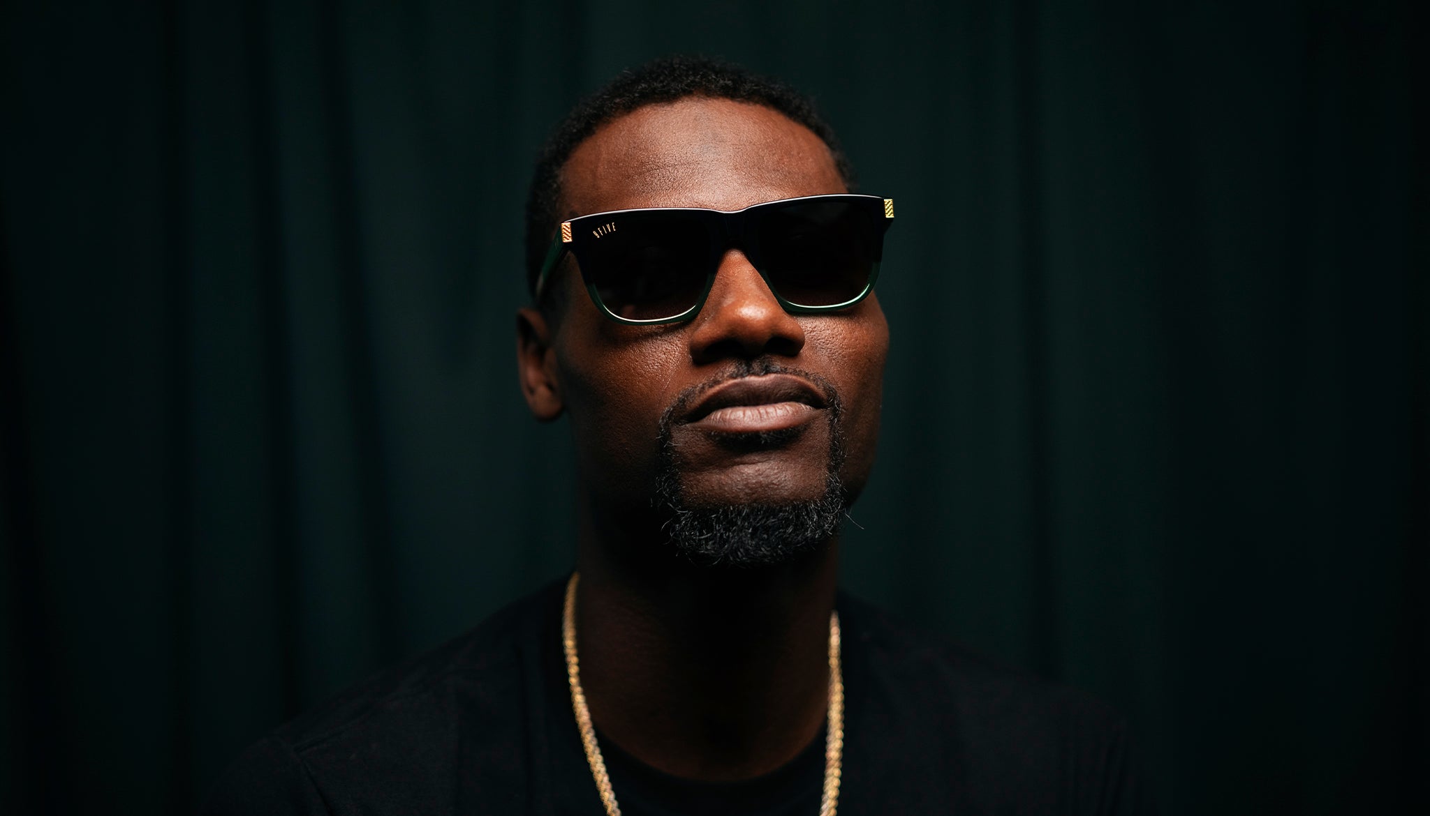 - Gold metal 9FIVE monogram coin embedded on left and right temple tip