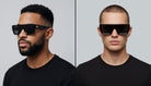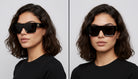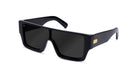 - Glossy black frame and temples with 24k gold plated stainless steel accents