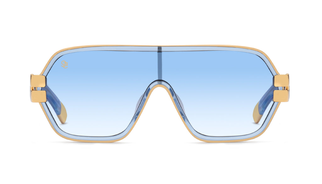 - Blue gradient lens (100% UV Protection) lens with gold 95 logo on the upper right