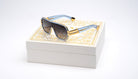 - Blue gradient lens (100% UV Protection) lens with gold 95 logo on the upper right