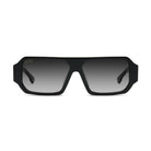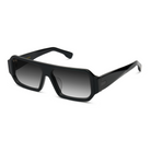 - Glossy black frame and temples with black chrome-plated stainless steel accents