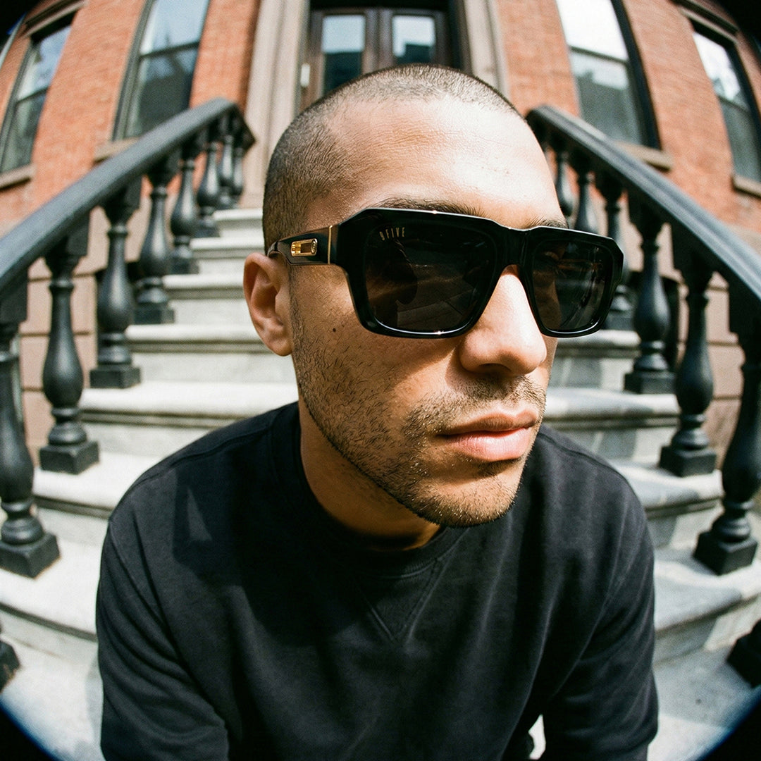 - Gold-embedded 9FIVE logo on temple tip tip